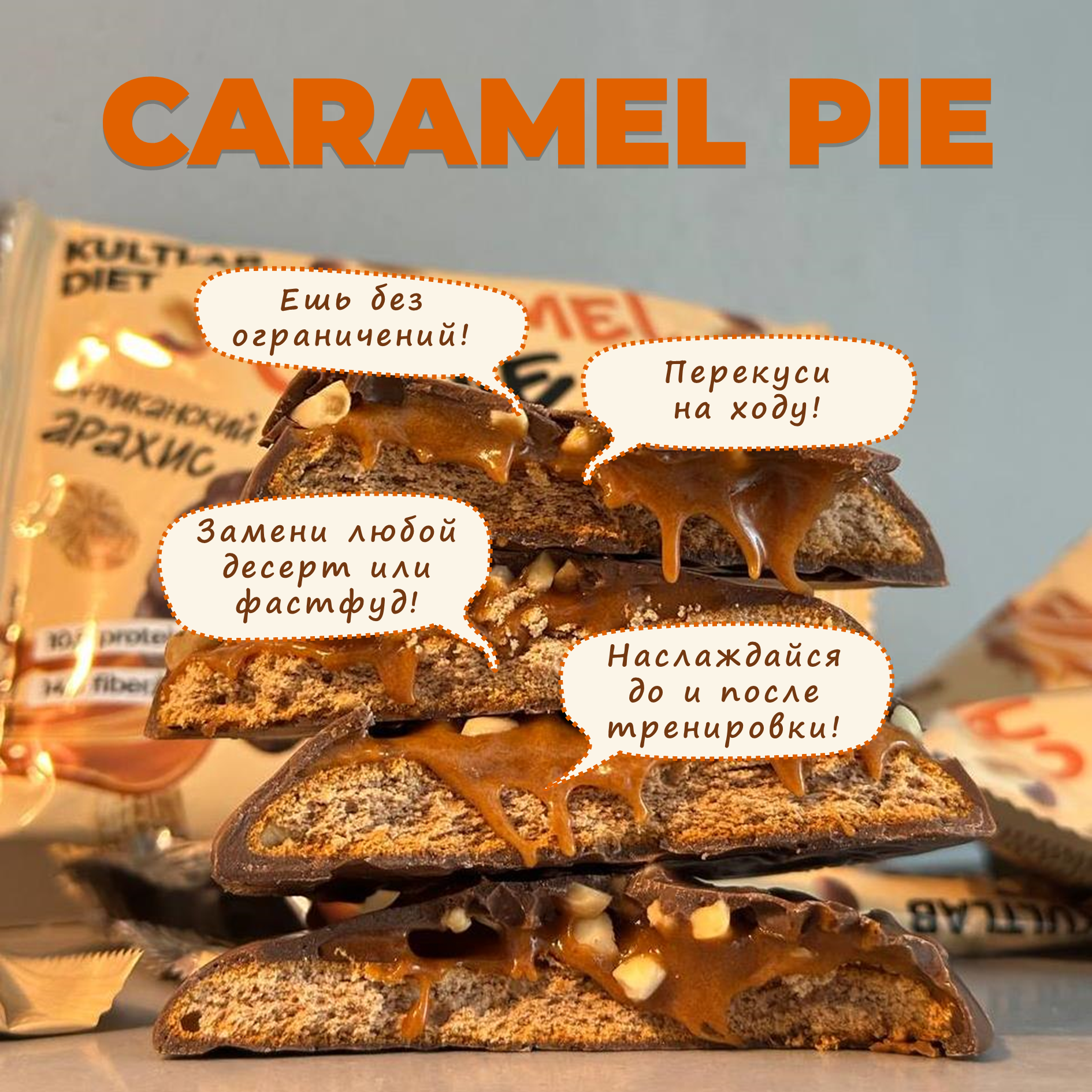 Купить Протеиновое печенье без сахара Kultlab Caramel Pie, Арахис и Карамель, 8 шт.