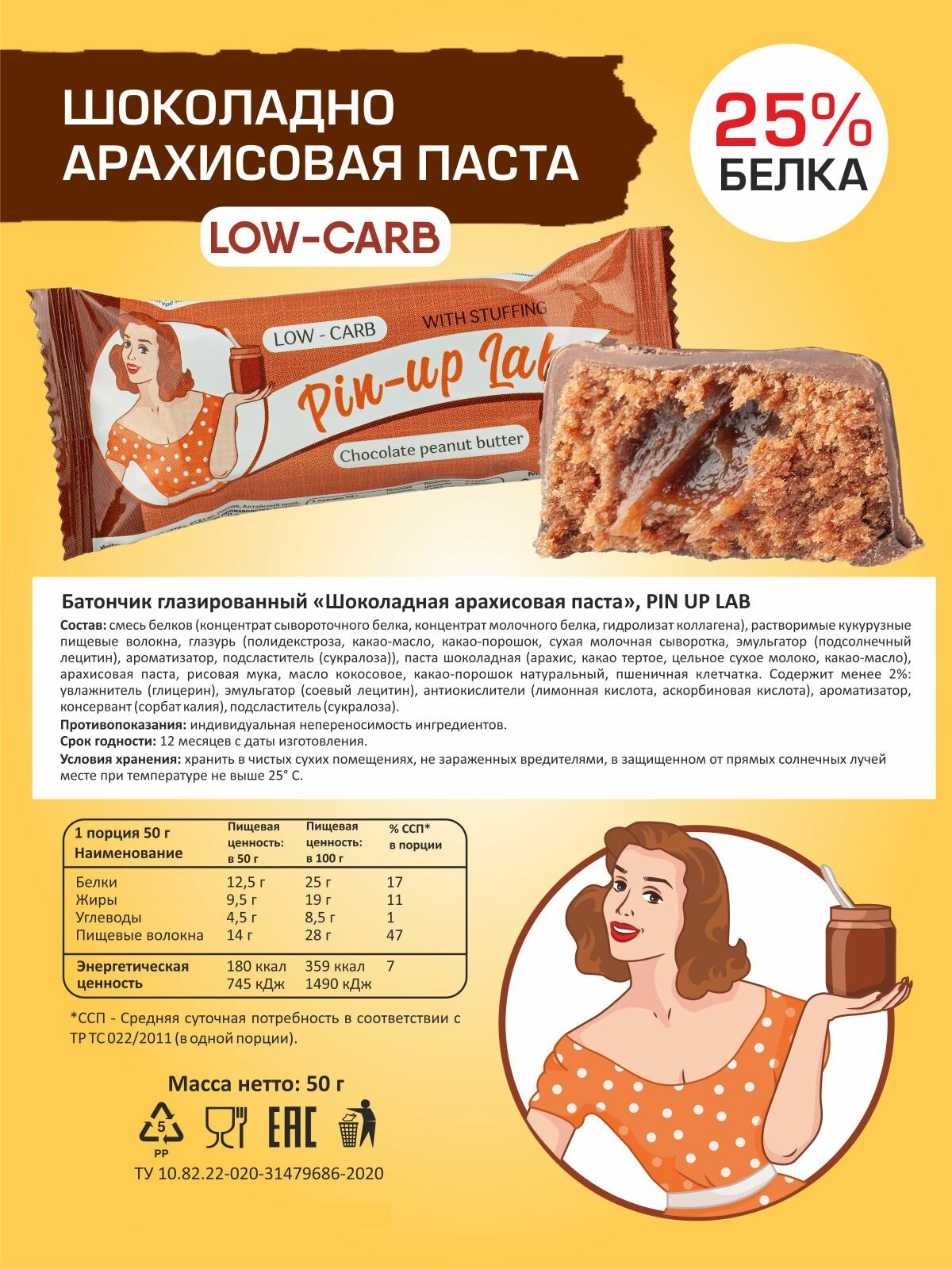 PIN UP LAB протеиновые батончики без сахара в шоколаде с начинкой Шоколадная арахисовая паста, 12 шт интересное: