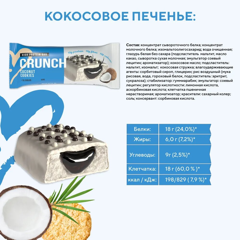 Купить Протеиновый батончик BOOTYBAR Crunch, Кокосовое печенье, 16шт по 60г