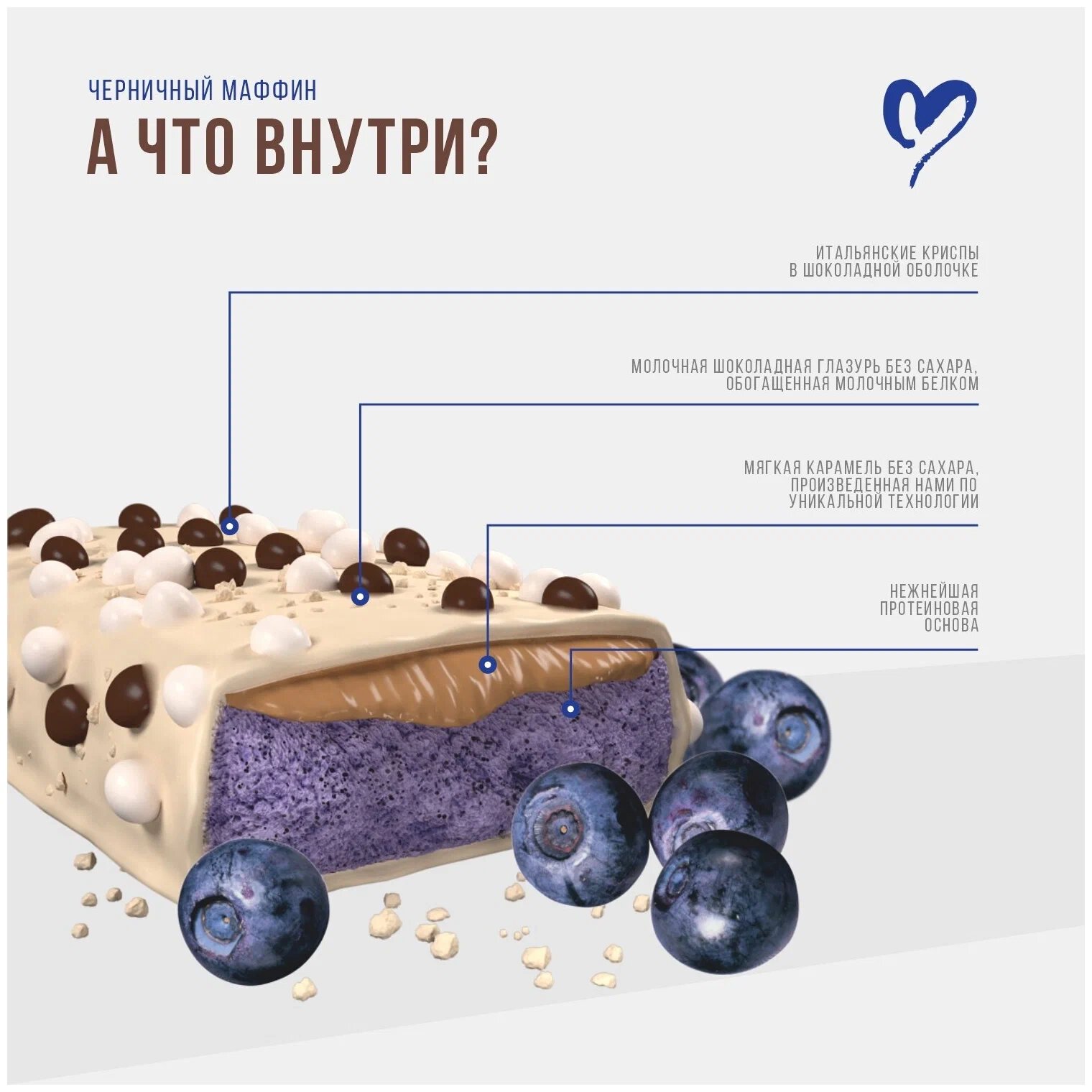 Купить BOOTYBAR Crunch 60 г (коробка 16шт) (Blueberry muffin)