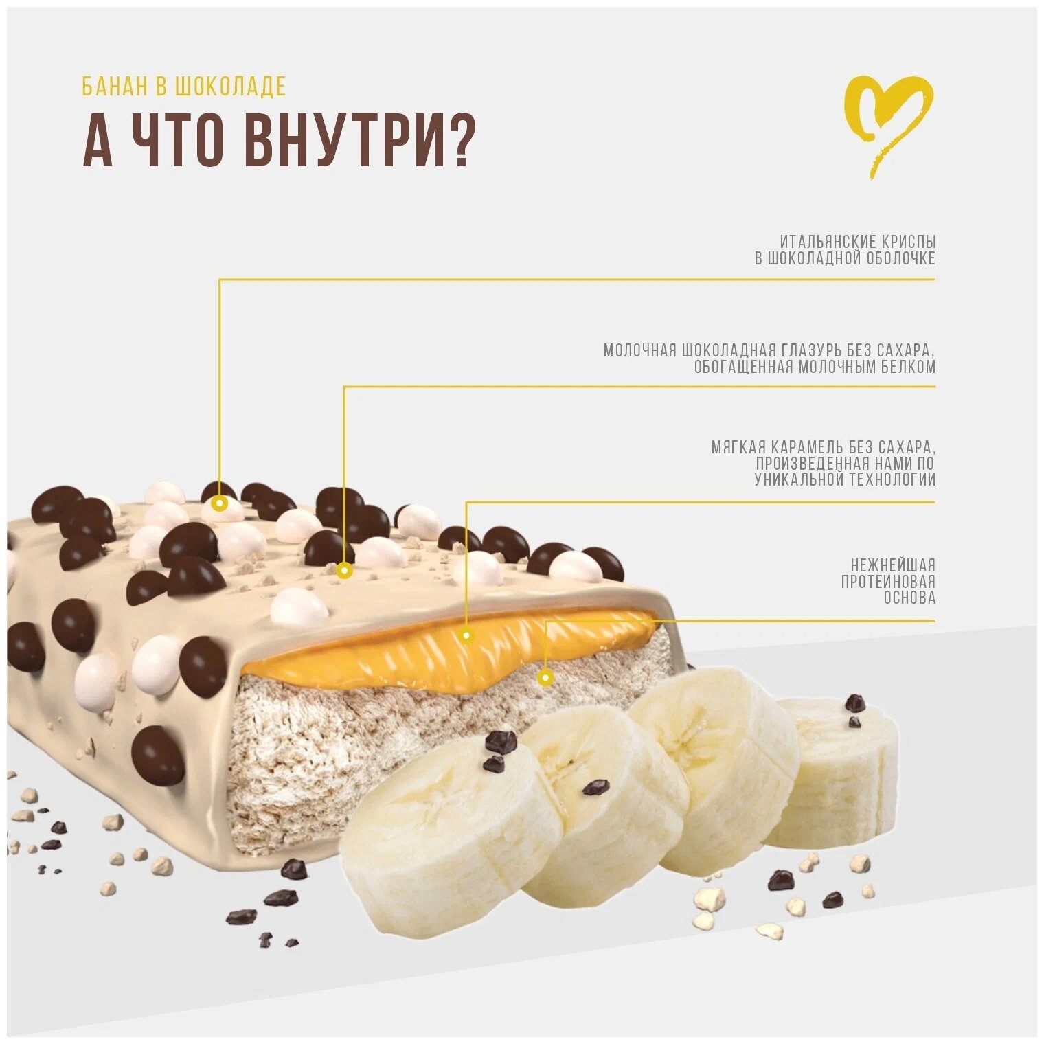 Купить BOOTYBAR Crunch 60 г (коробка 16шт) (Banana with chocolate drops)
