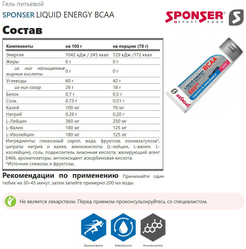 Ниже Вы можете прочитать отзывы на Гель питьевой SPONSER LIQUID ENERGY BCAA 3 тюбика x 70 г, Клубника-банан, ознакомится с подробными характеристиками, посмотреть интересные обзоры и фотографии на Гель питьевой SPONSER LIQUID ENERGY BCAA 3 тюбика x 70 г, Клубника-банан.