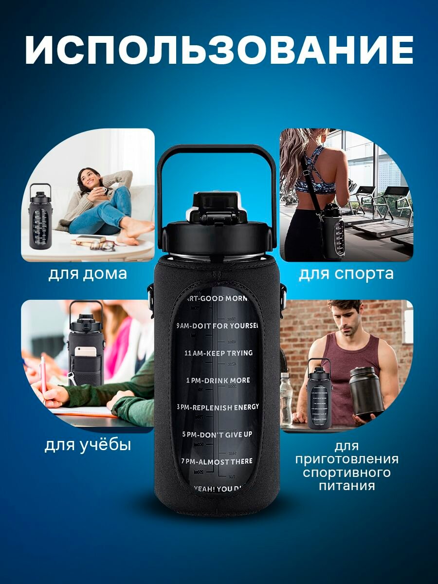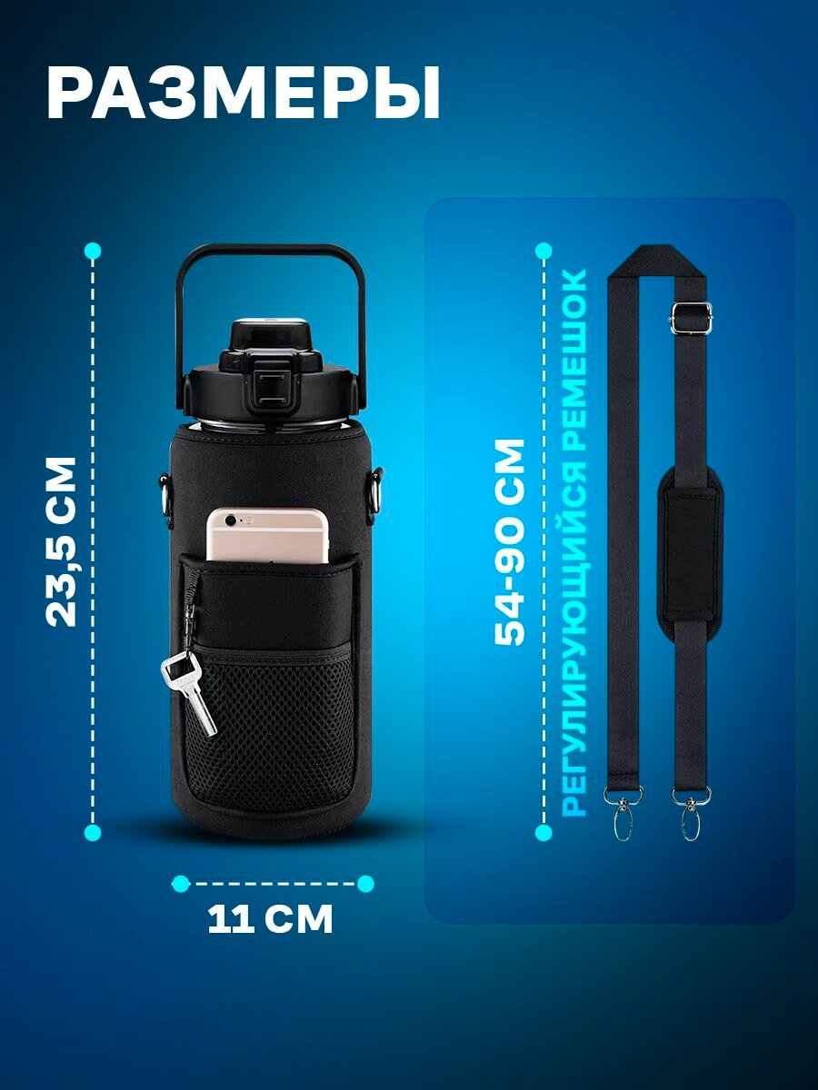 Бутылка спортивная 2л с чехлом для хранения и ремешком для ношения на плече/Спортивная фляга/ Бутылка для туризма интересное: