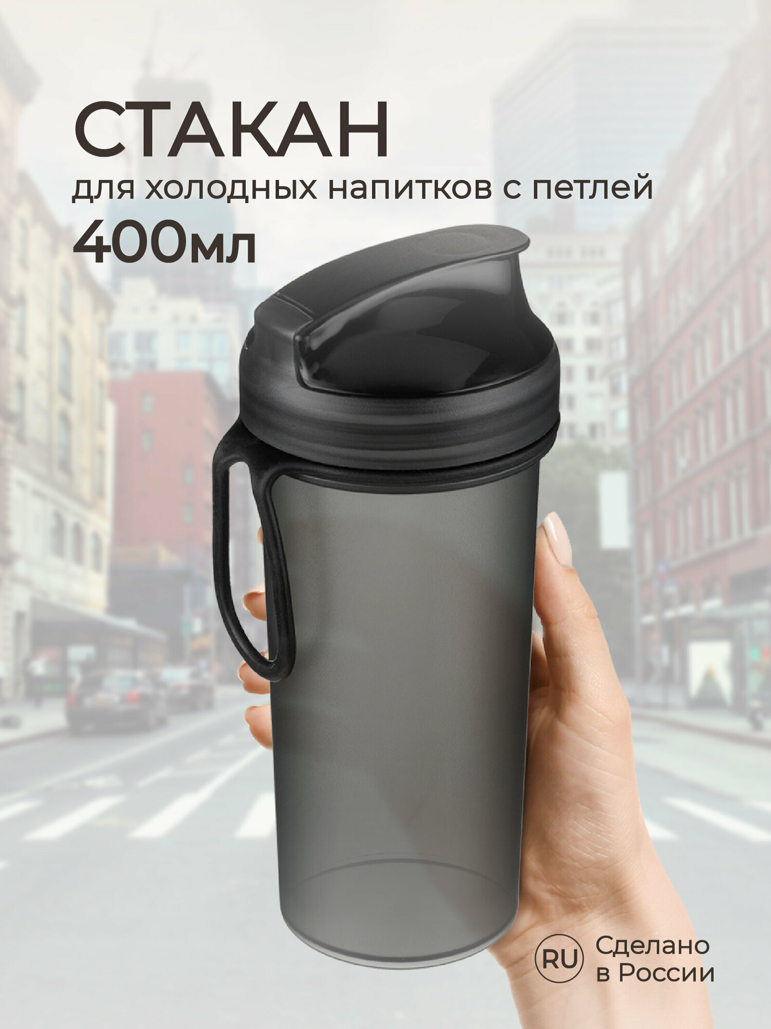 Бутылка для холодных напитков с петлей 400 мл (черный) интересное: