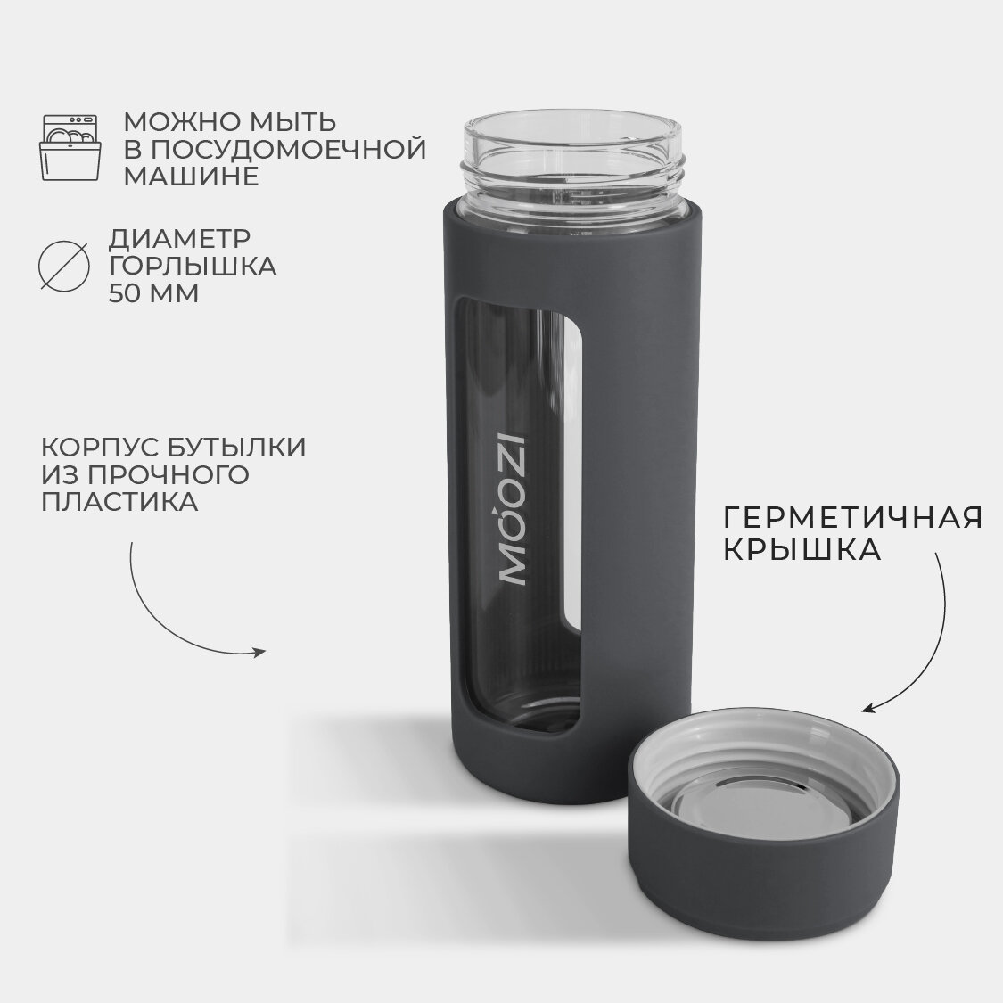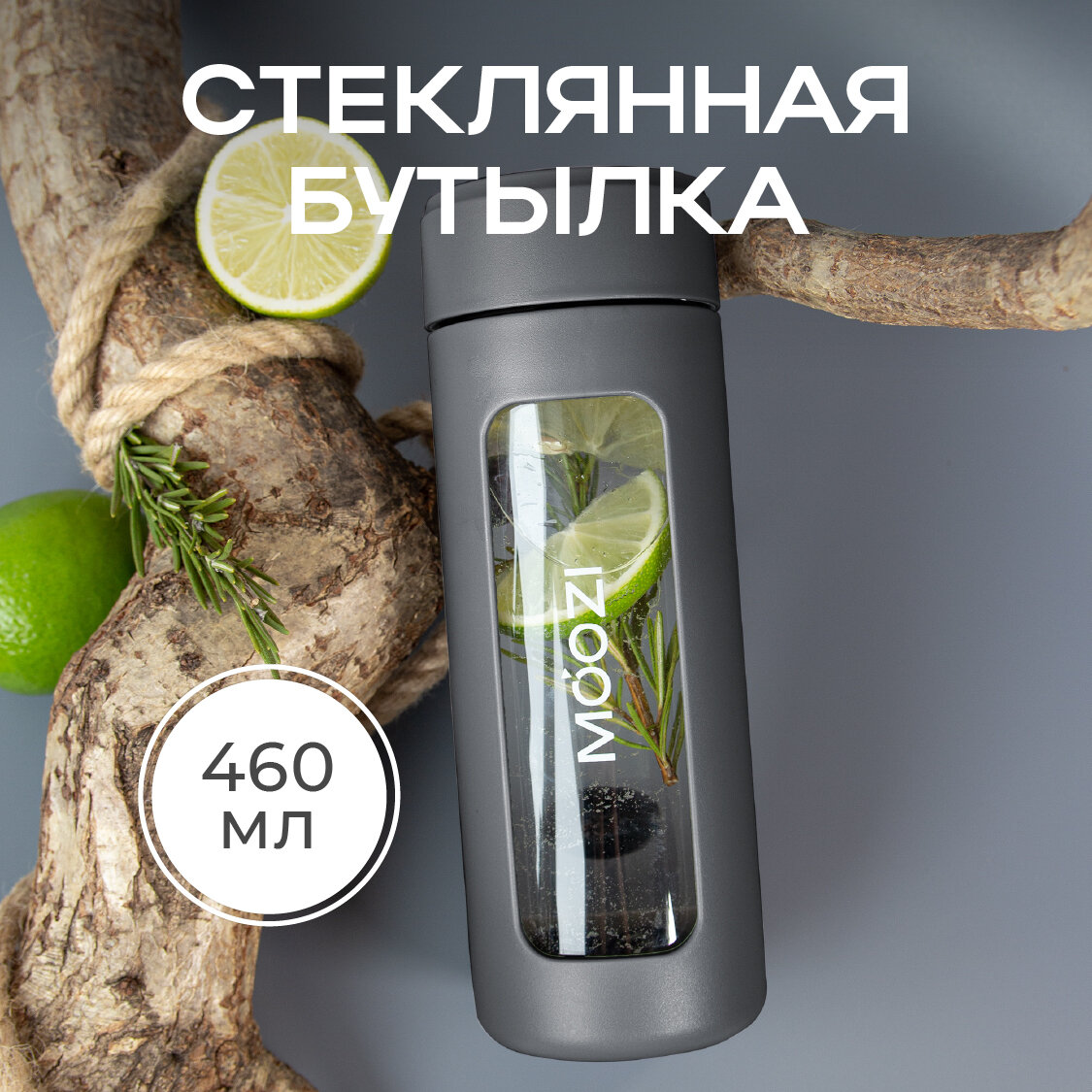 Купить Бутылка для воды спортивная MOOZI, многоразовая, объем 460 мл, цвет серый