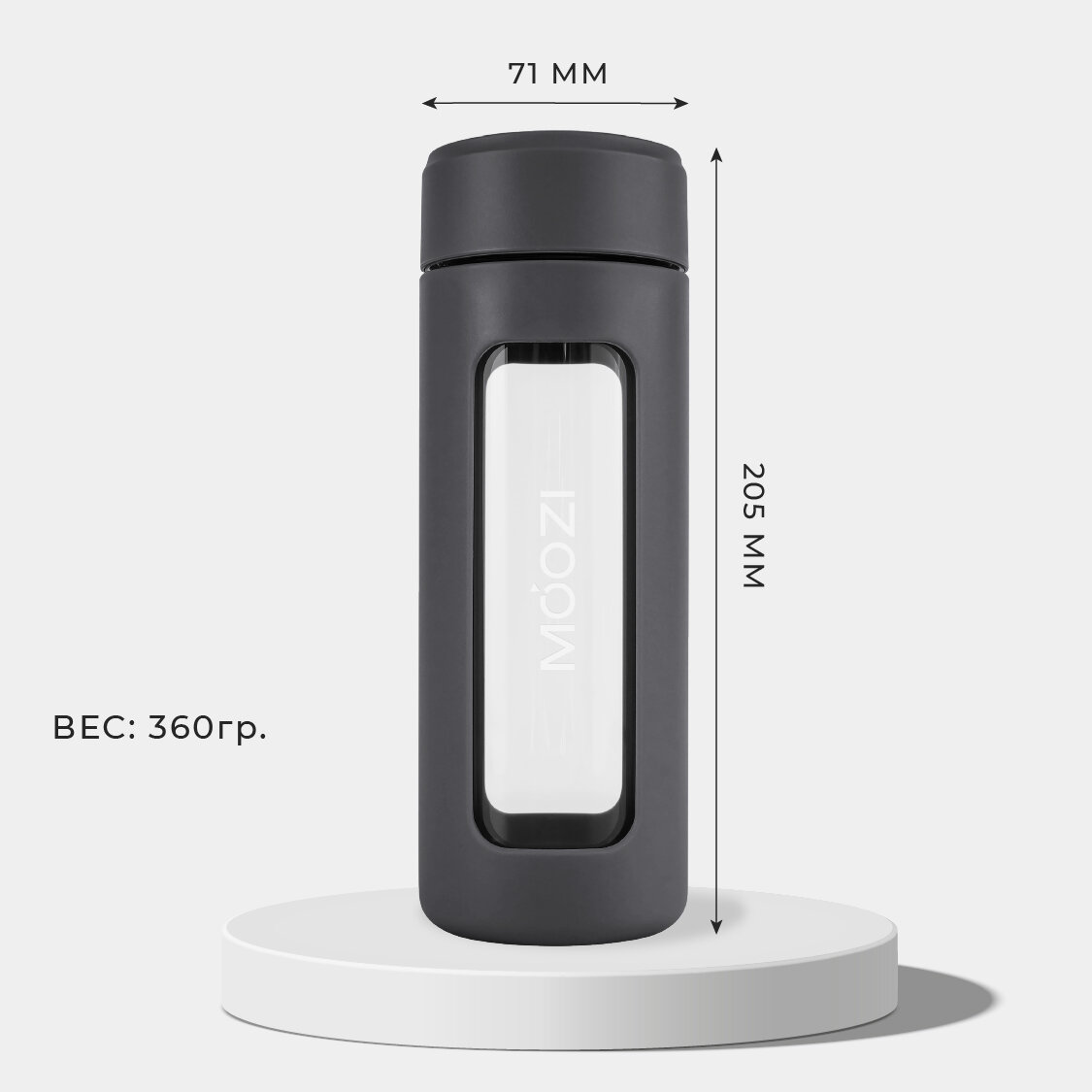 Бутылка для воды спортивная MOOZI, многоразовая, объем 380 мл, цвет серый