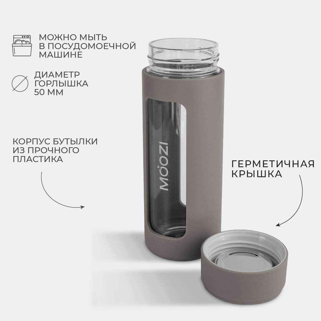 СохранитьБутылка для воды спортивная MOOZI, многоразовая, объем 460 мл, цвет серо-бежевый интересное: