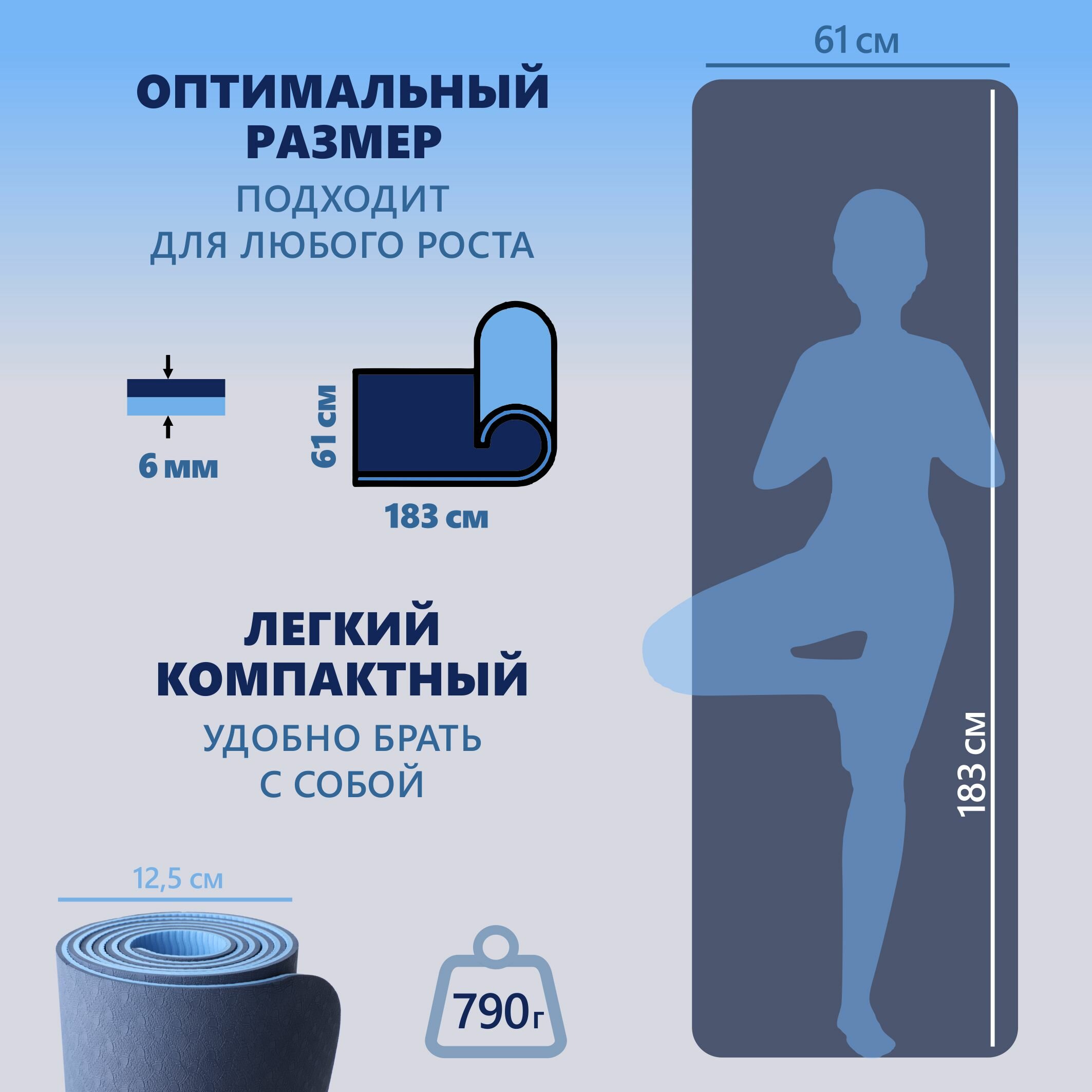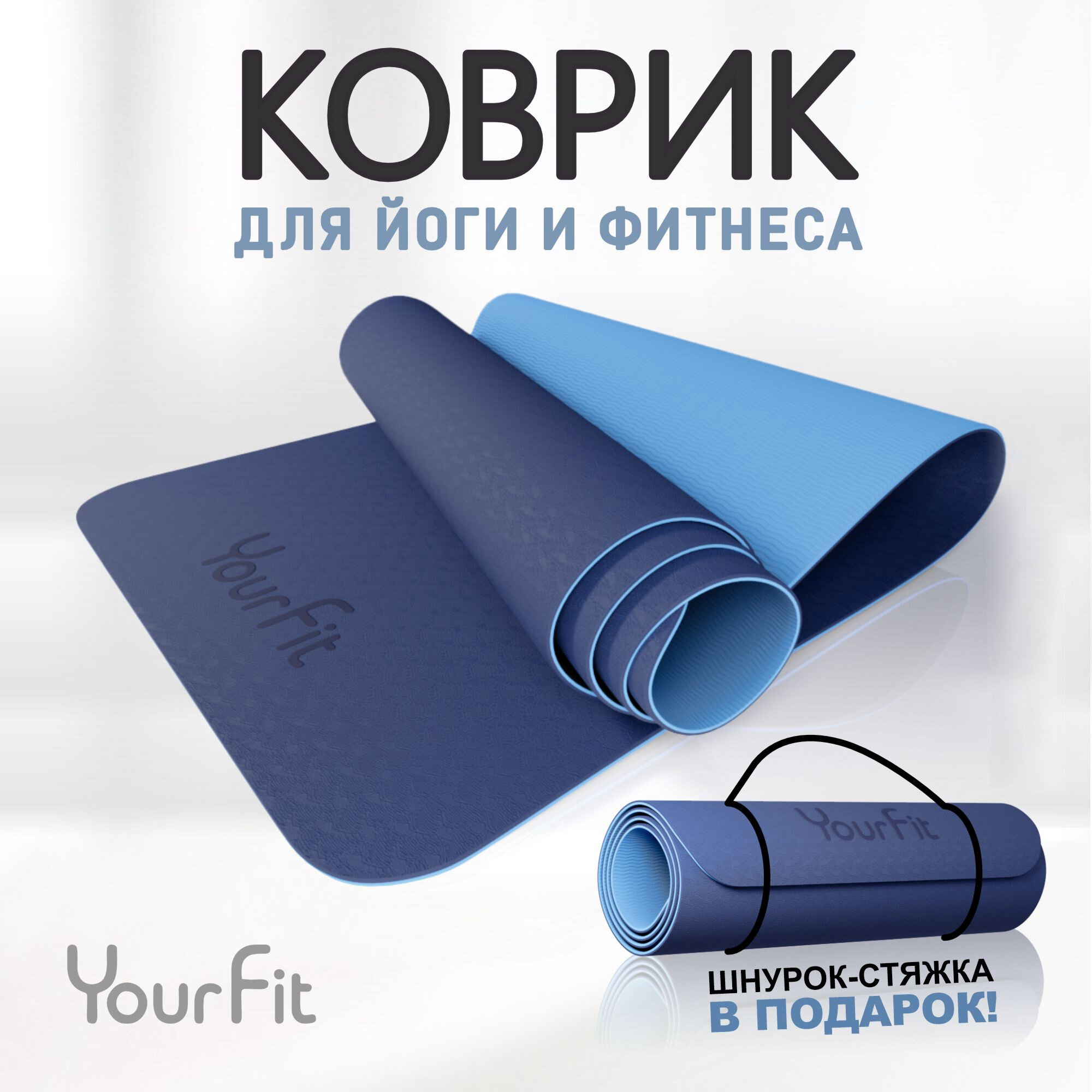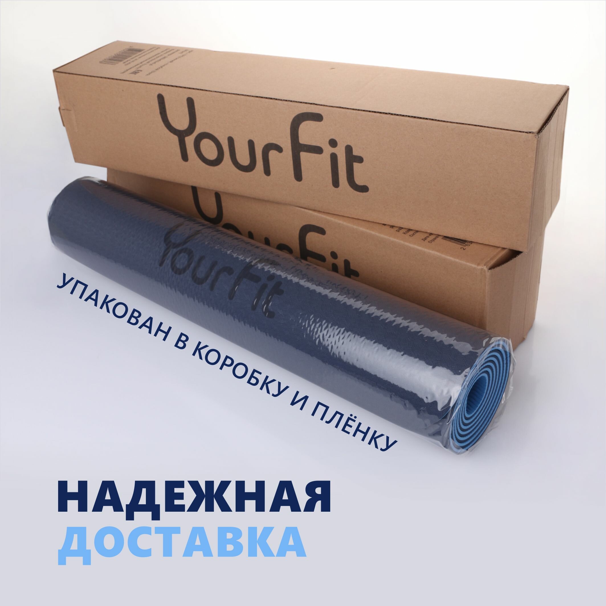 Коврик для фитнеса и йоги YourFit, синий интересное: