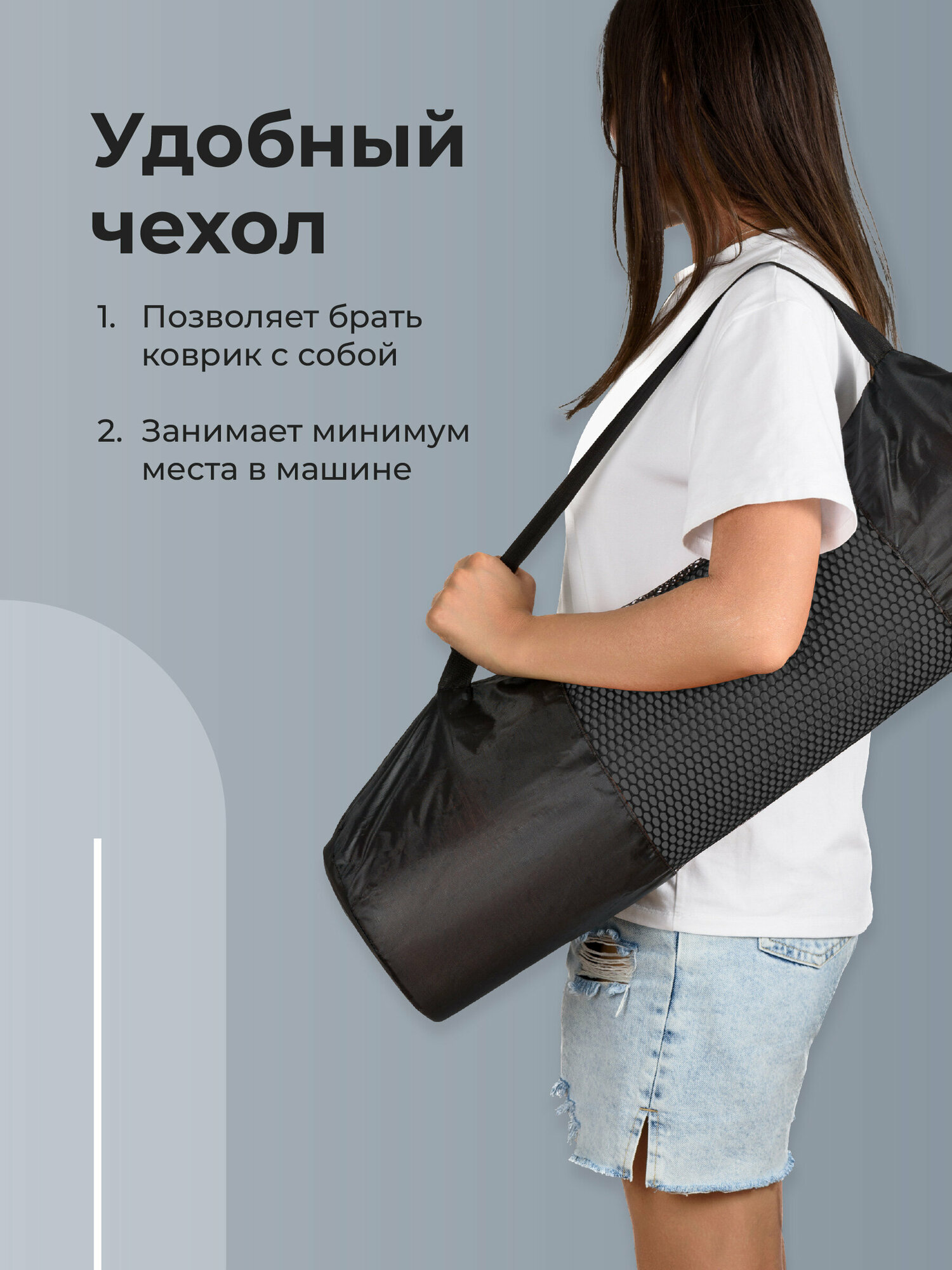 Спортивный коврик для йоги, Hamsa Yoga, Нескользящий резиновый коврик для фитнеса премиум, Черный, Каучук, Размер 183х68х0.6 см. интересное: