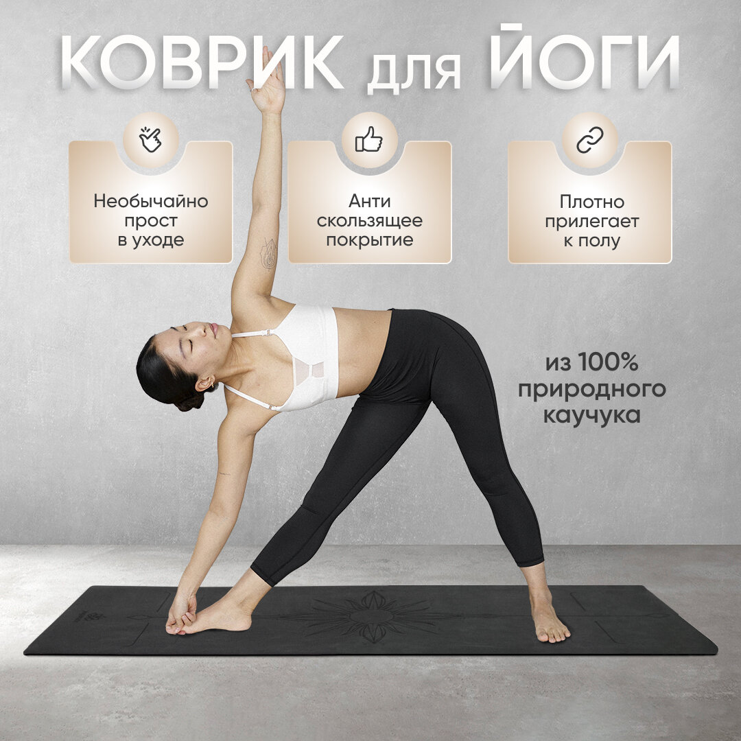СохранитьКоврик для йоги нескользящий каучуковый с чехлом Арт Йогаматик Sun Grey Premium Light 185x68x0.4 см темно-серый, черный интересное: