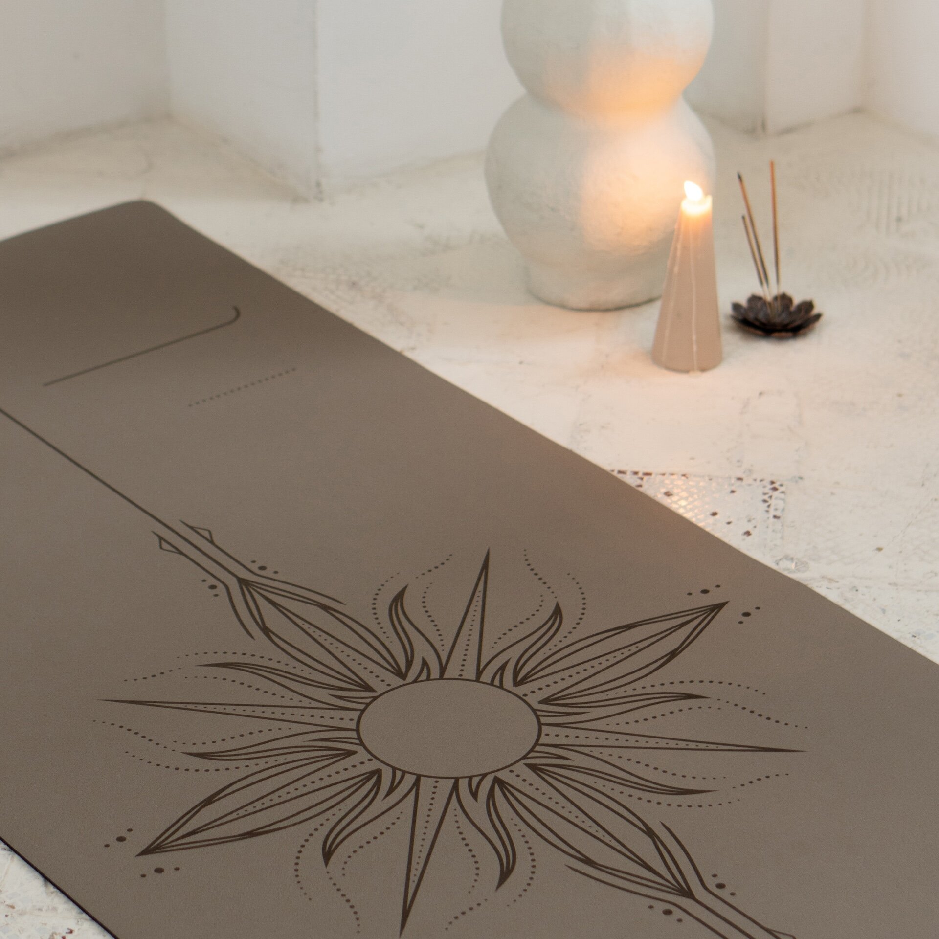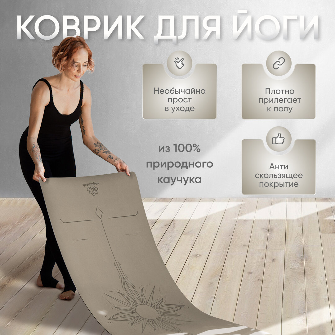 Коврик для йоги нескользящий каучуковый с чехлом Арт Йогаматик Sun Grey Premium Light 185x68x0.4 см темно-серый, черный