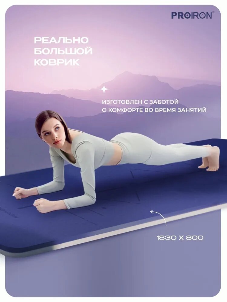Коврик для фитнеса и йоги нескользящий PROIRON, размеры 1830*800*7мм, материал TPE, серо-фиолетовый интересное: