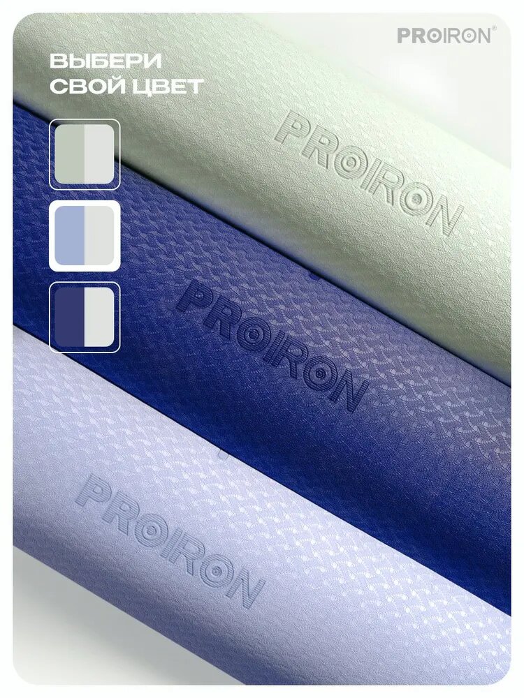 Коврик для фитнеса и йоги нескользящий PROIRON, размеры 1830*800*7мм, материал TPE, серо-синий интересное: