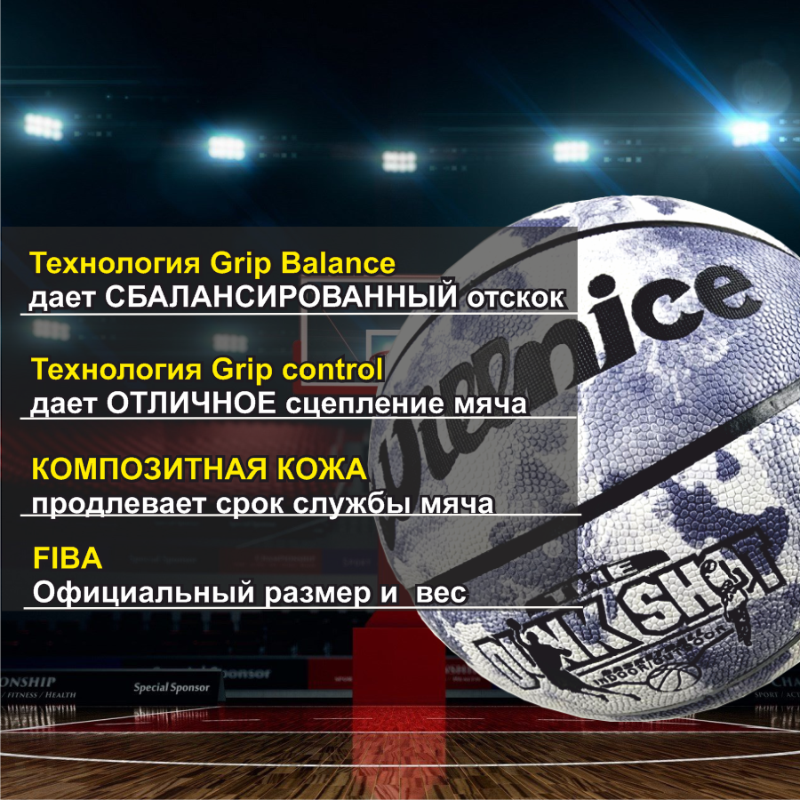 | Дополнительная информация | качественная проклейка швов, отскок баскетбольного мяча с высоты 2.2м примерно 140 см |