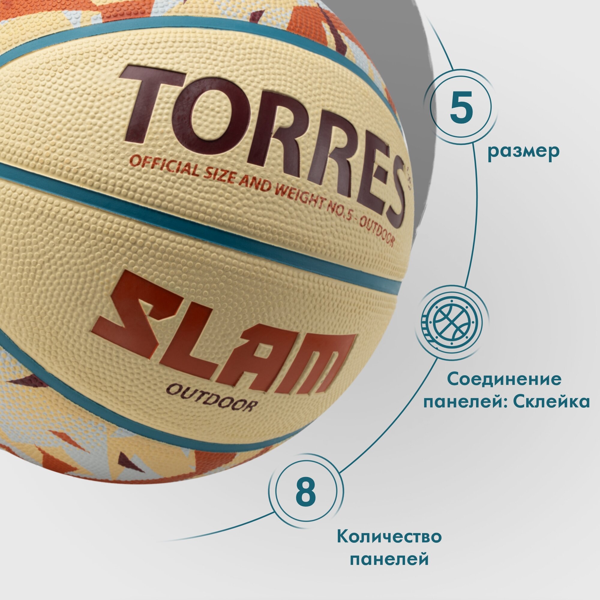 Мяч баскетбольный TORRES Slam B023145, размер 5 интересное: