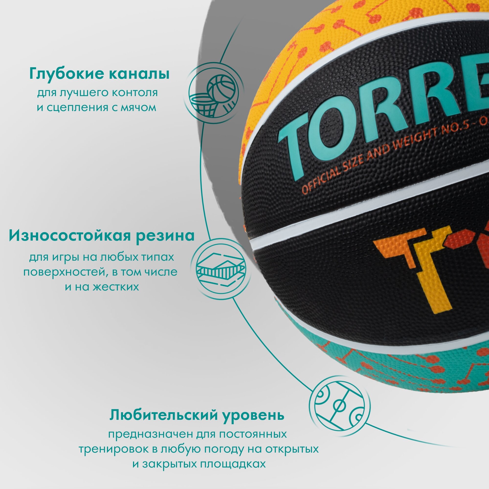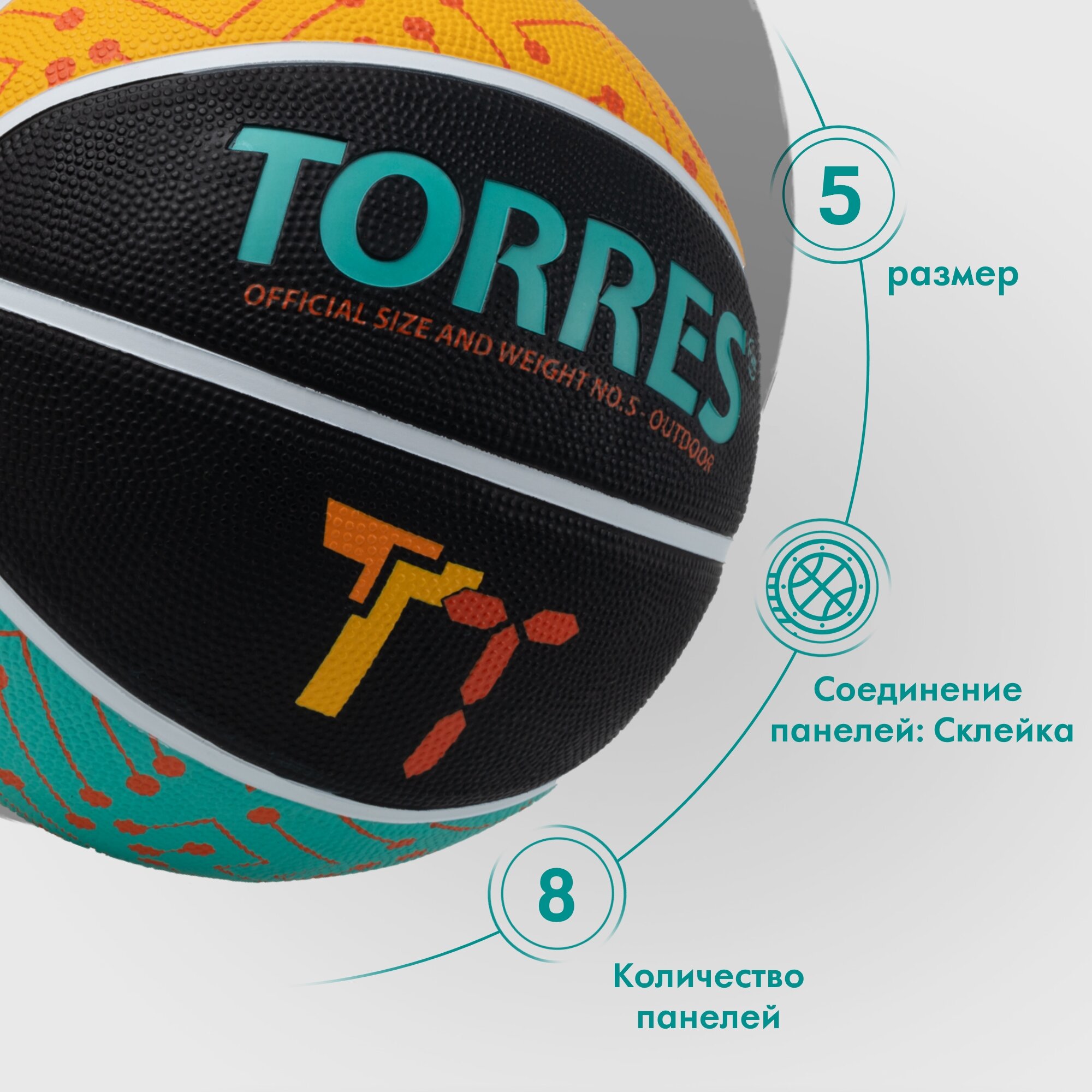 Мяч баскетбольный TORRES TТ B023155, размер 5 интересное: