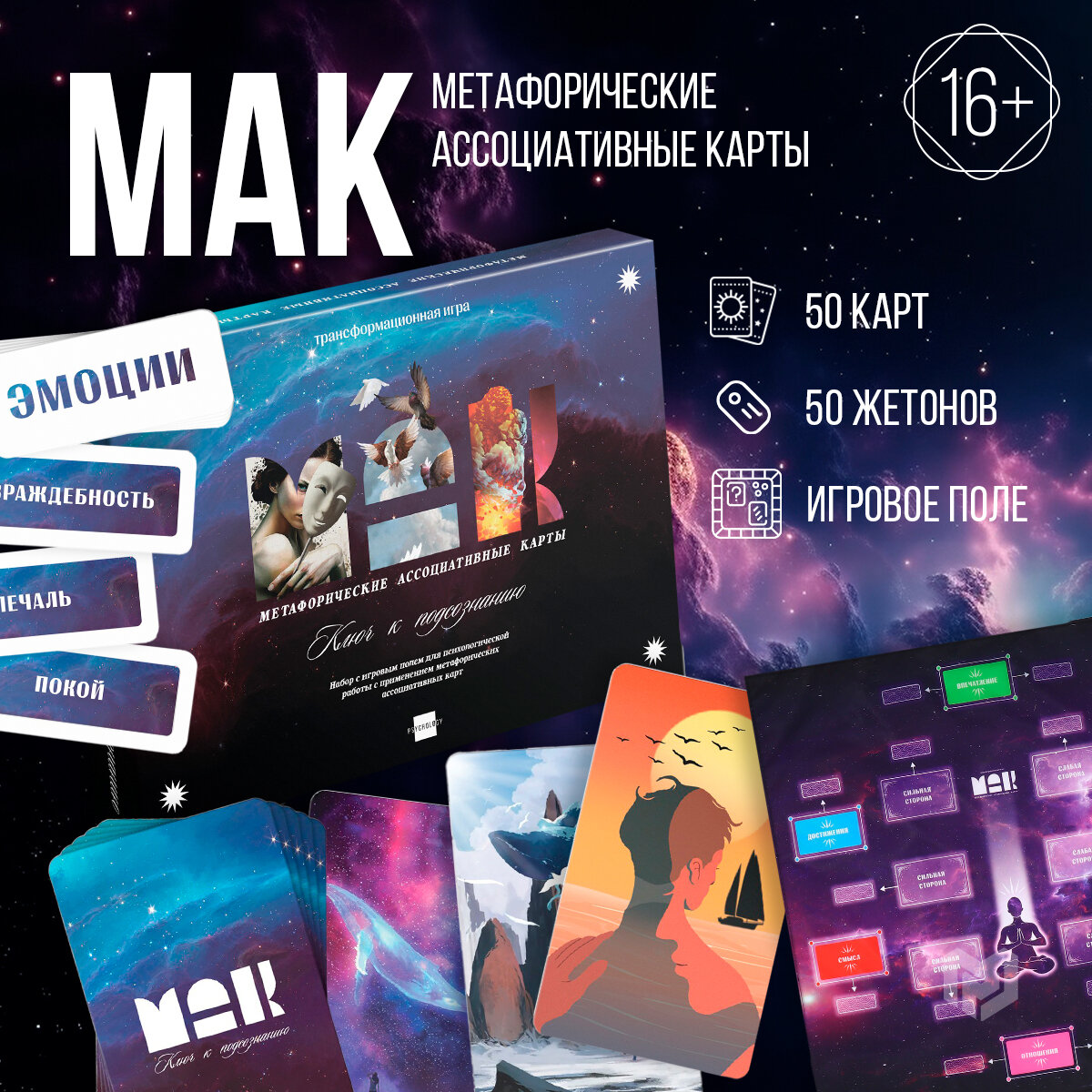 Купить Трансформационная игра «Ключ к подсознанию», 50 карт, 50 жетонов, игровое поле, 16+