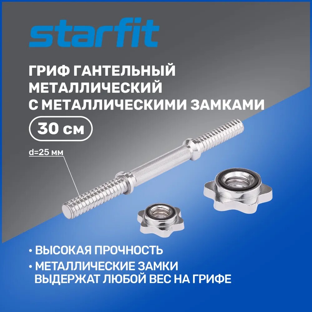 Гриф гантельный Starfit Bb-107 D=25 мм, металлический, хромированный, 30 см