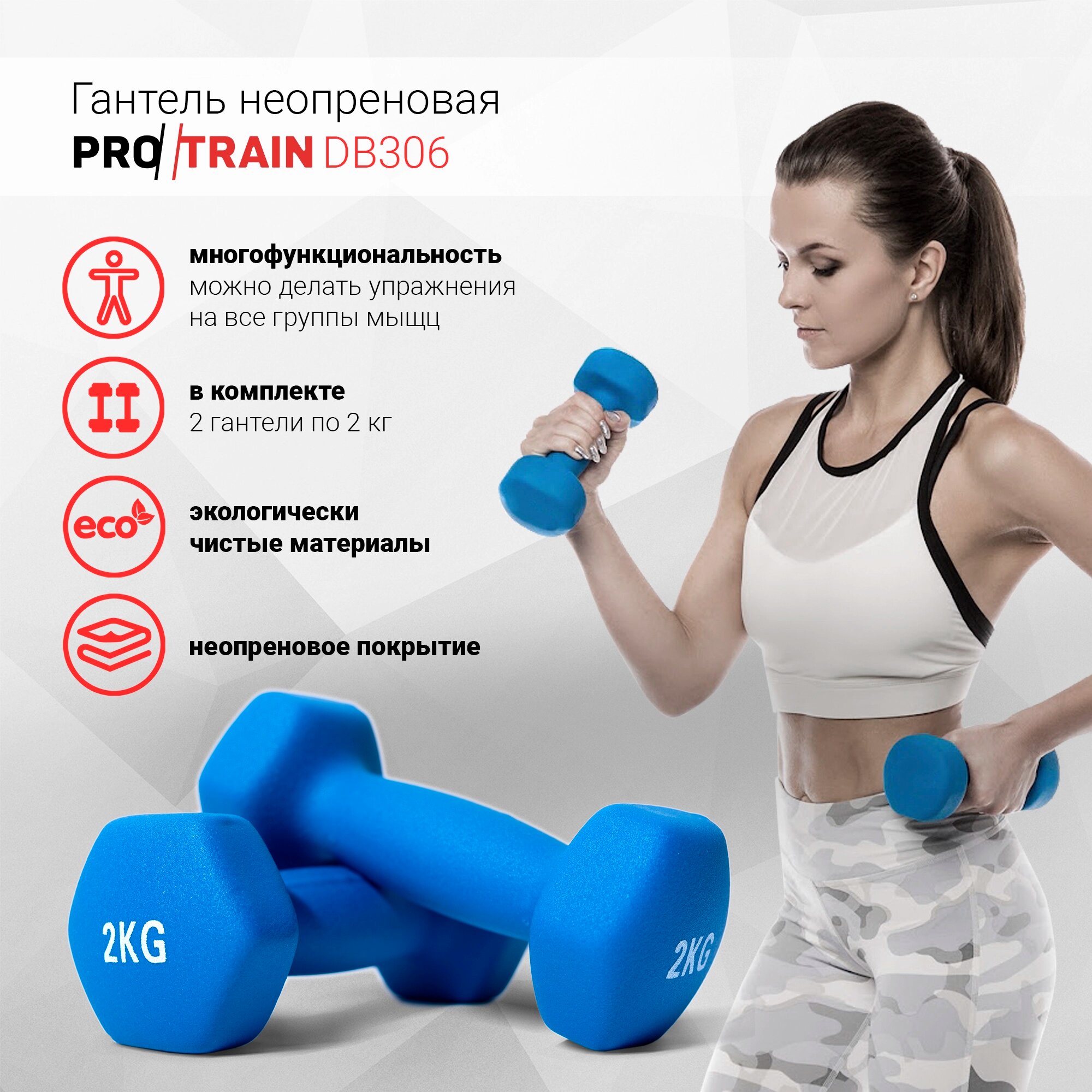 Гантель неопреновая Protrain DB306-2 (пара)(пара) интересное: