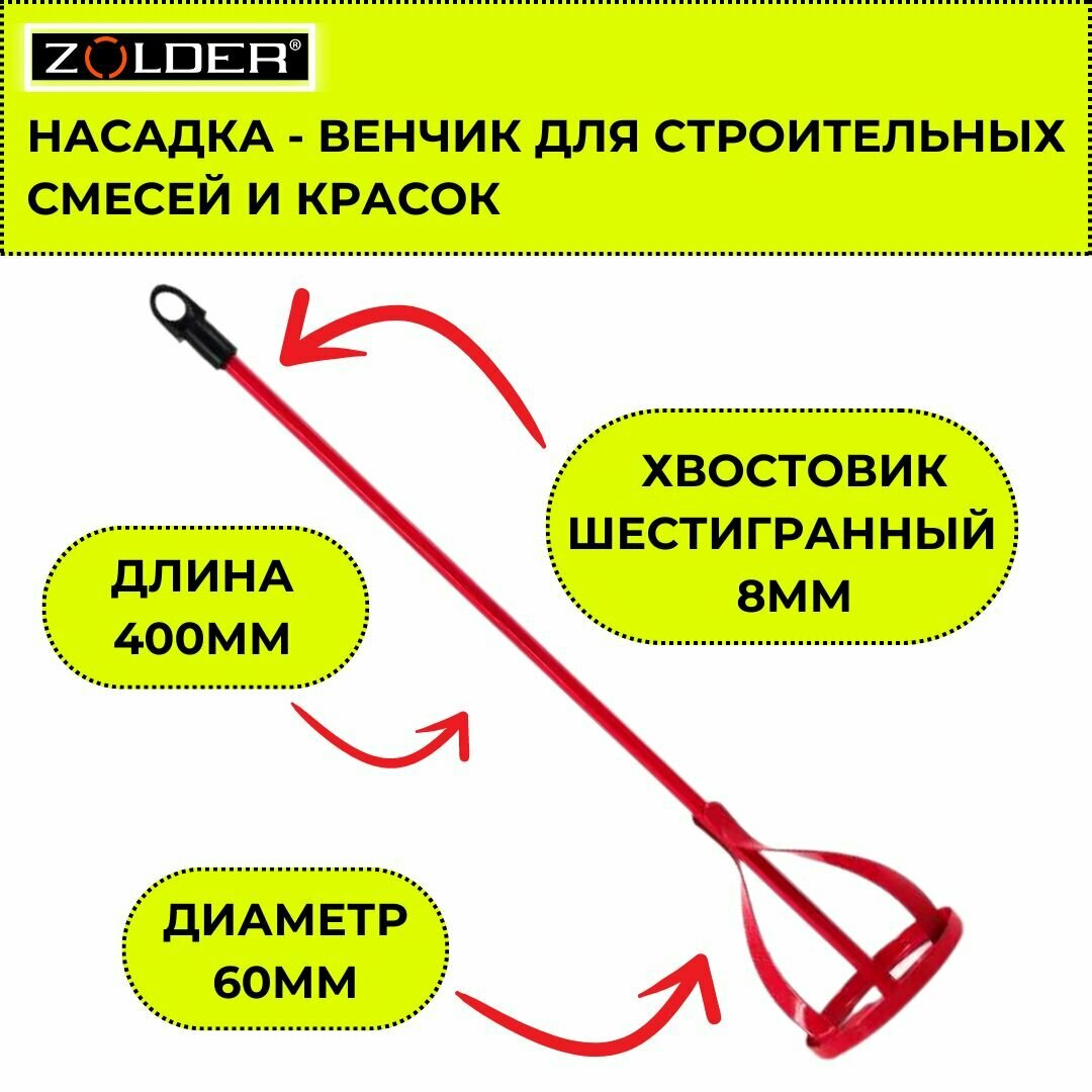 Миксер-насадка для краски и строительных смесей Zolder металлическая окрашенная 60х400мм интересное:
