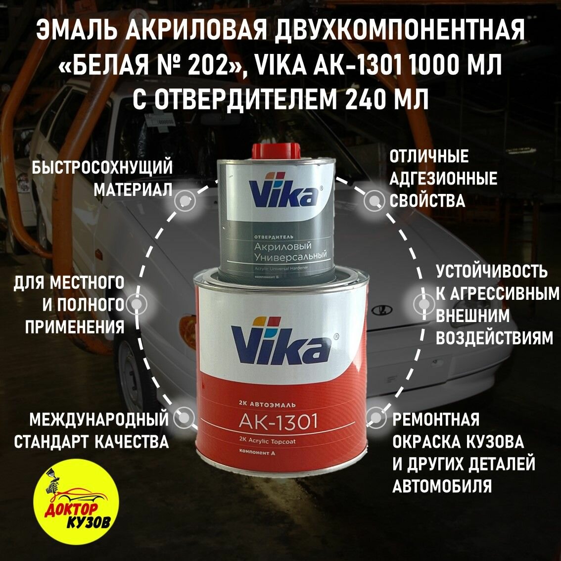 Эмаль акриловая Vika АК-1301 2К, белая 202, 0.85 кг, с отвердителем 1301, 0.212 кг интересное: