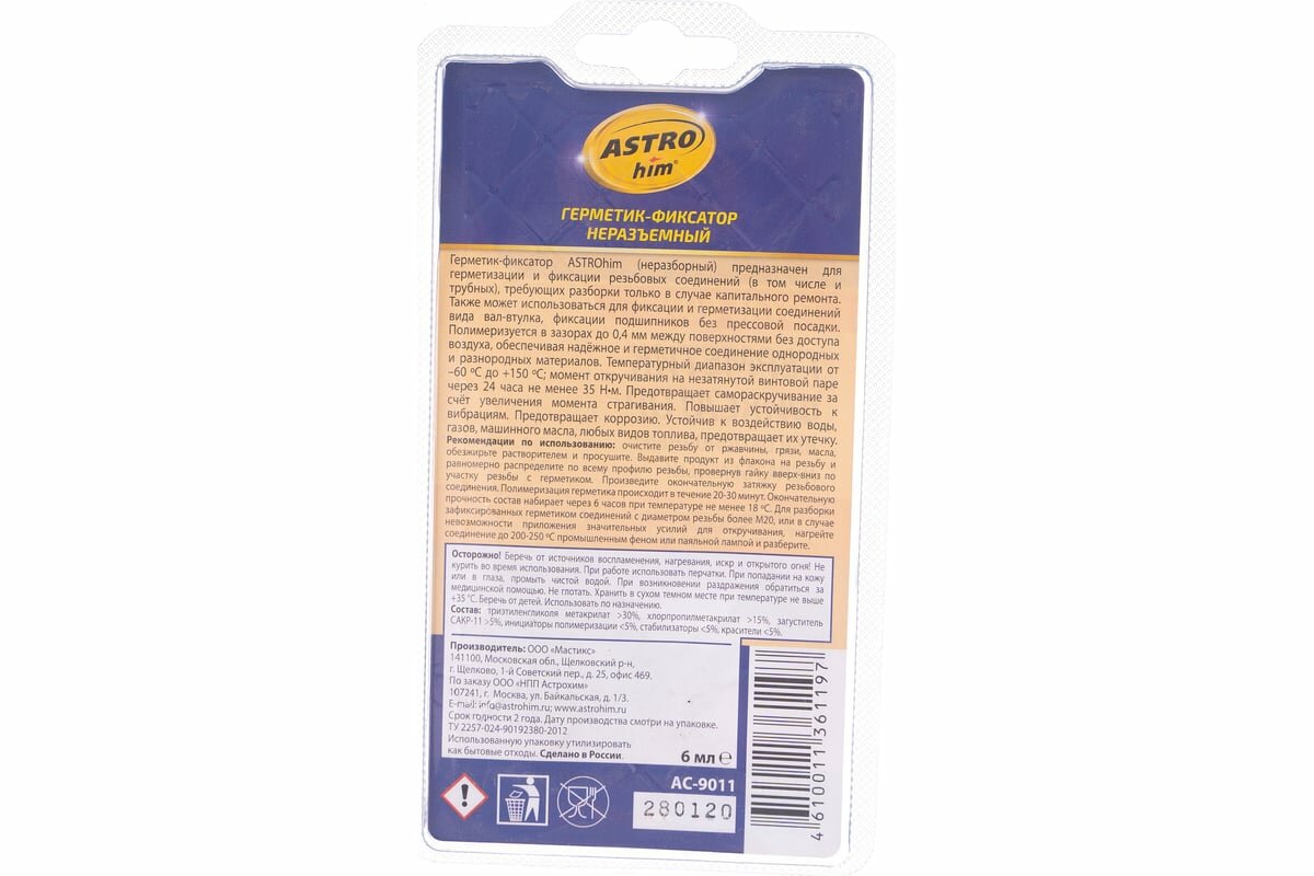 Закрепитель резьбы неразъёмный 6 мл. Астрохим Ас-9011 блистер