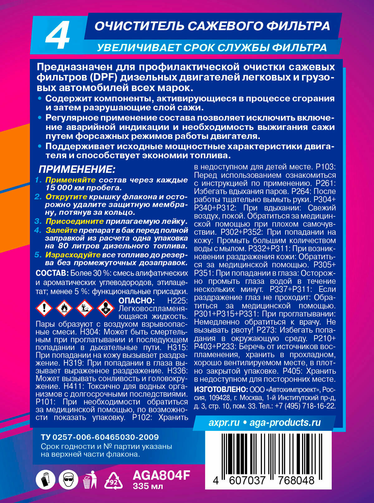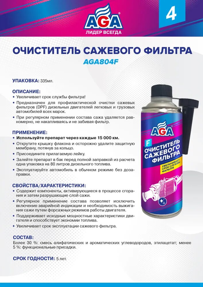 Очиститель сажевого фильтра AGA 335 мл AGA804F интересное: