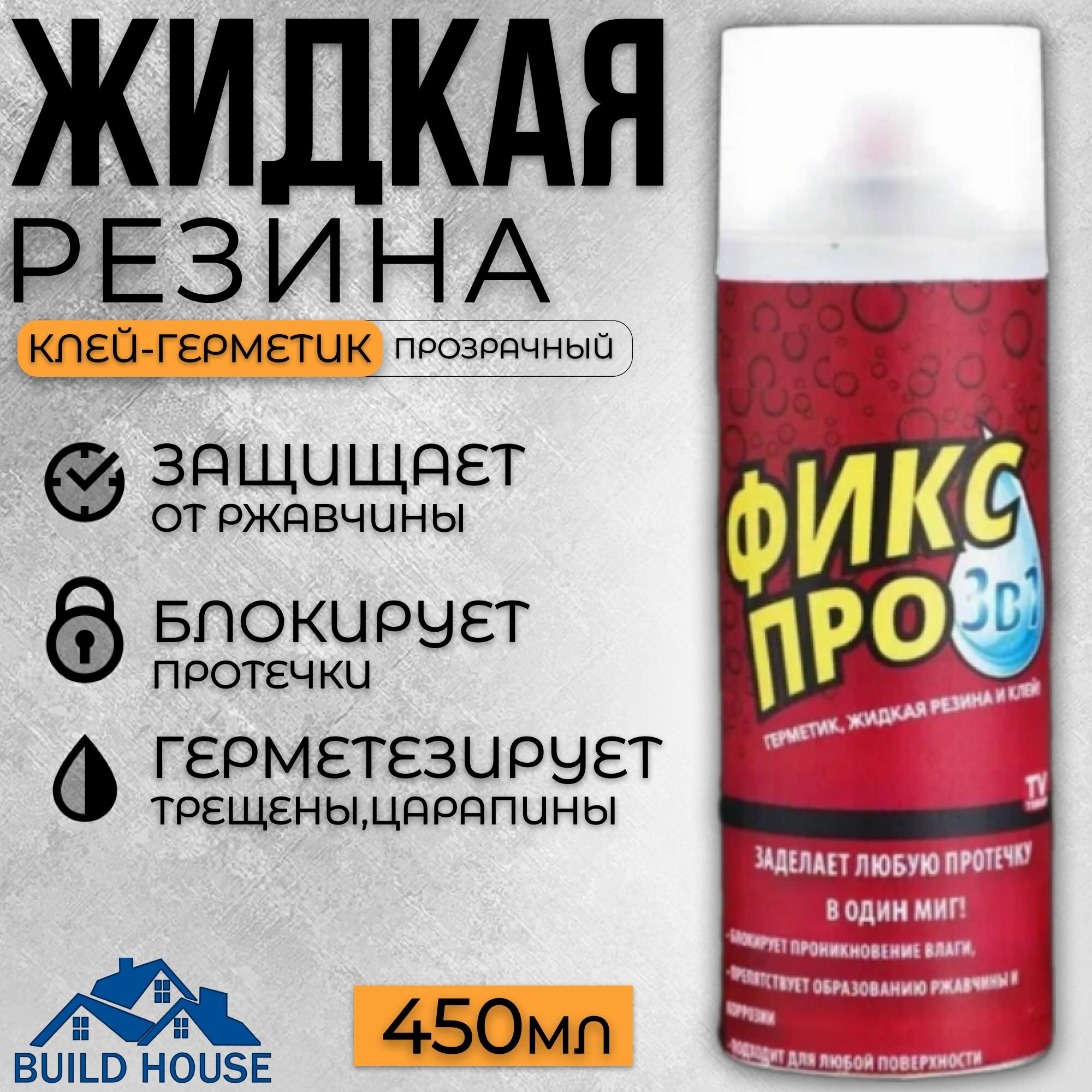 Купить жидкая резина герметик Фикс Про 3в1, прозрачный, 1 штук, 450мл
