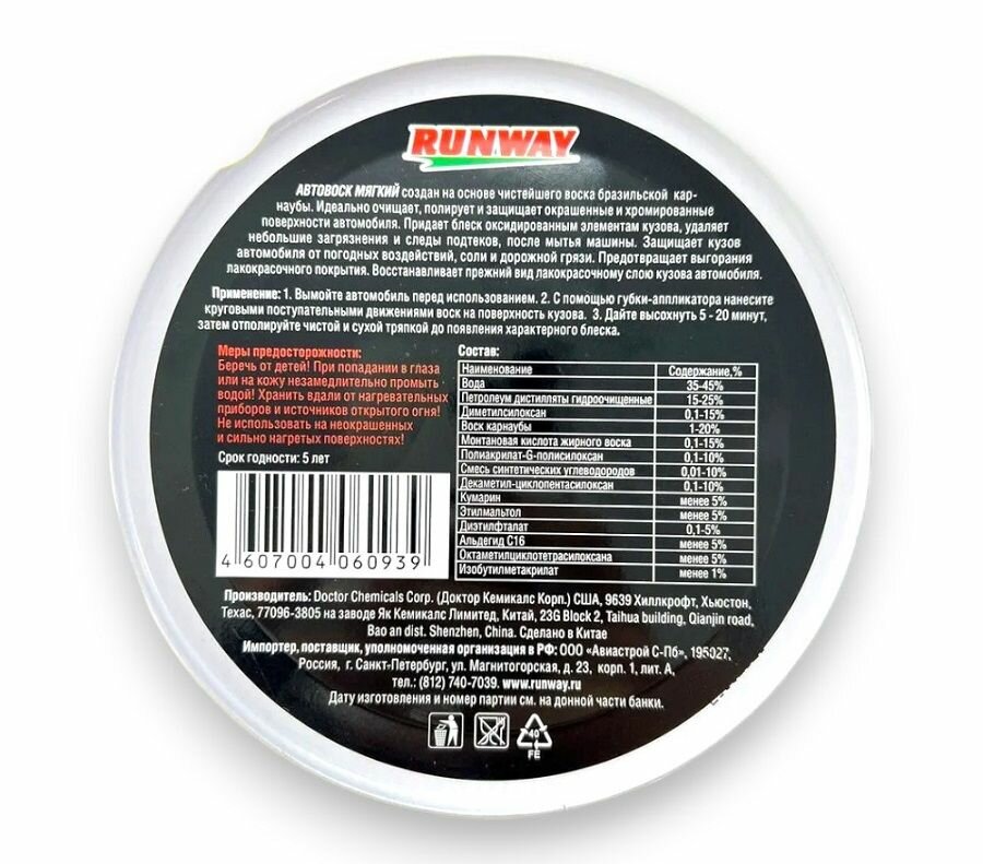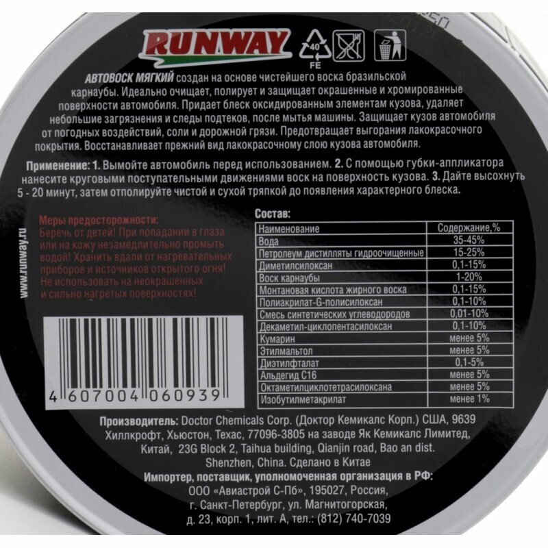 Мягкий Автовоск 300мл RUNWAY арт. rw6093 интересное: