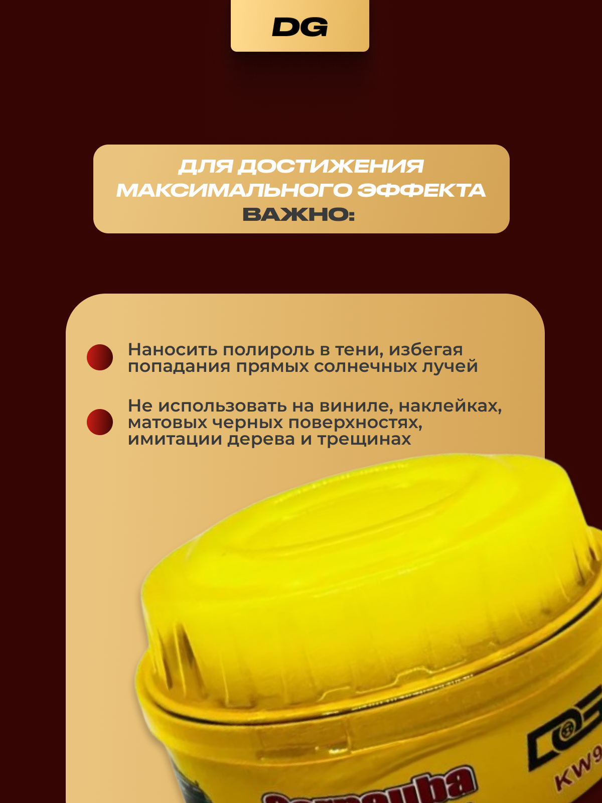 Полироль для кузова - автовоск мягкий с карнаубой DG Carnauba Car Wax, банка с губкой 230гр. интересное: