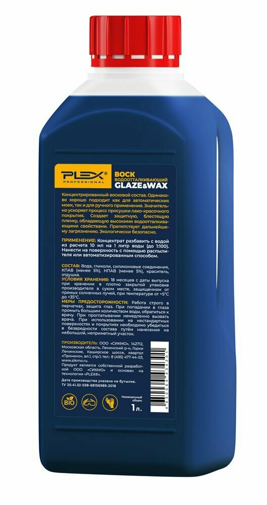 PLEX Воск водоотталкивающий (разведение 1:100) GLAZE&WAX 1л интересное: