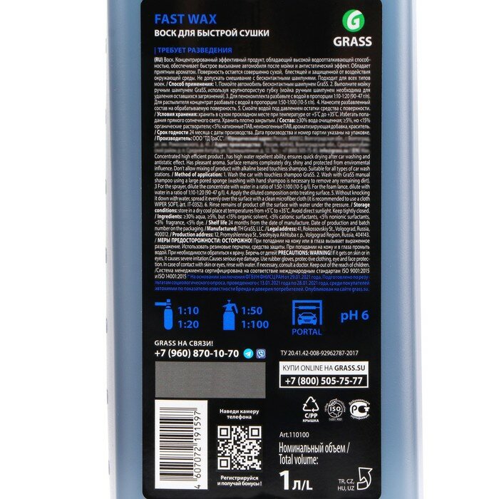 GRASS Холодный воск Grass Fast Wax, 1 л интересное: