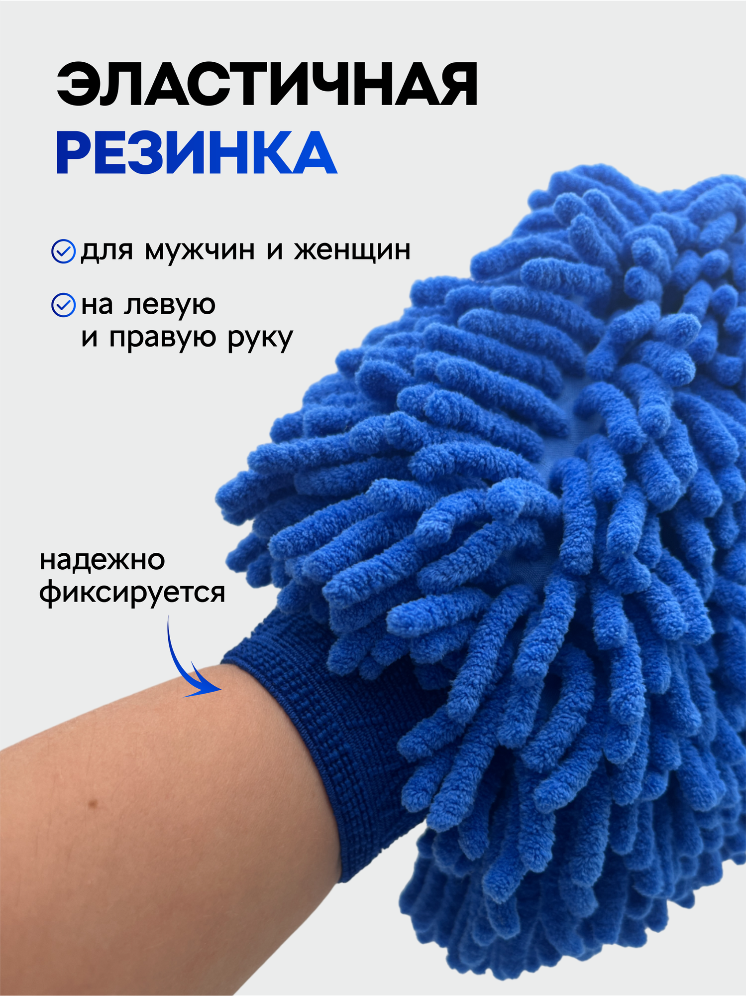 Двухсторонняя варежка для мойки автомобиля, перчатка из микрофибры универсальная, синяя