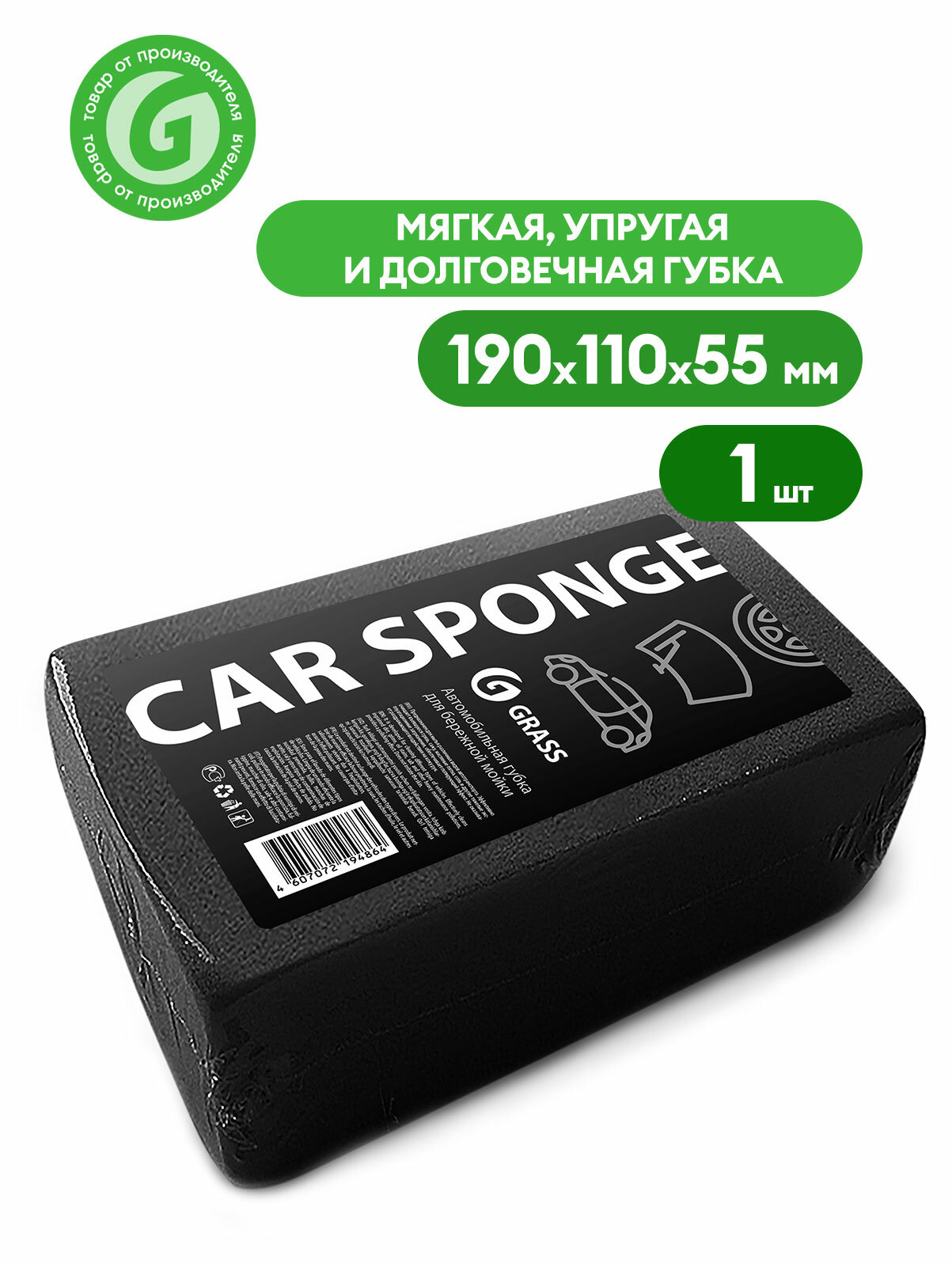 Губка черная GRASS 190Х110Х55ММ индивид упак