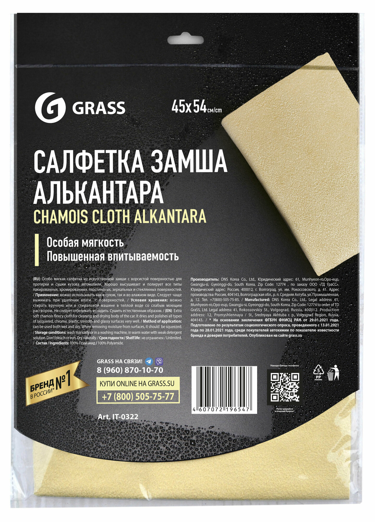 Салфетка замша искусственная (45х54 см) "GRASS" Алькантара