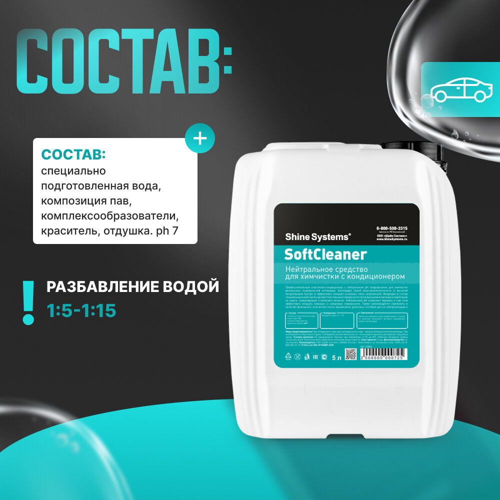 SoftCleaner - нейтральное средство для химчистки с кондиционером Shine Systems, 5 л интересное: