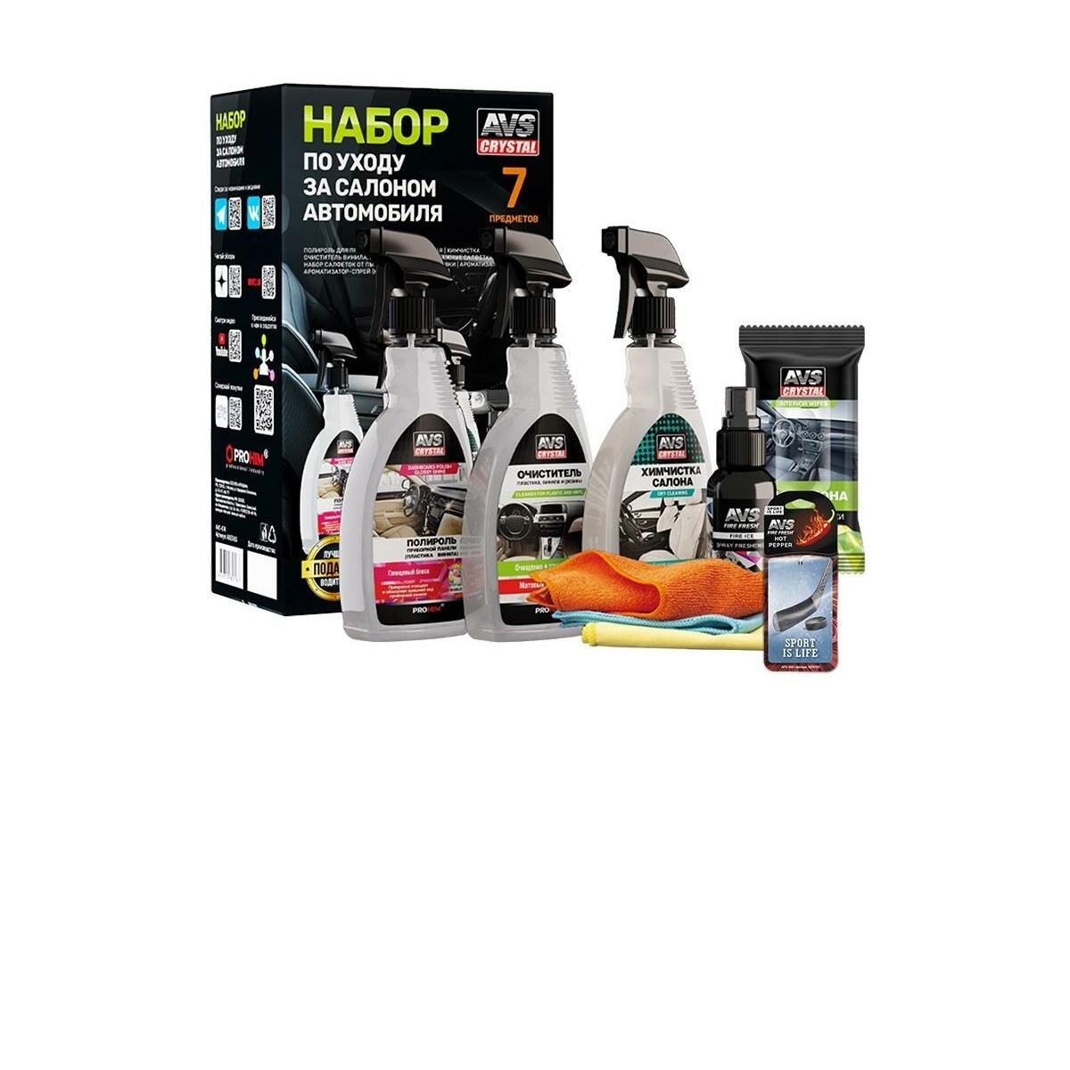 Набор по уходу за салоном автомобиля AVS AVK-874 интересное: