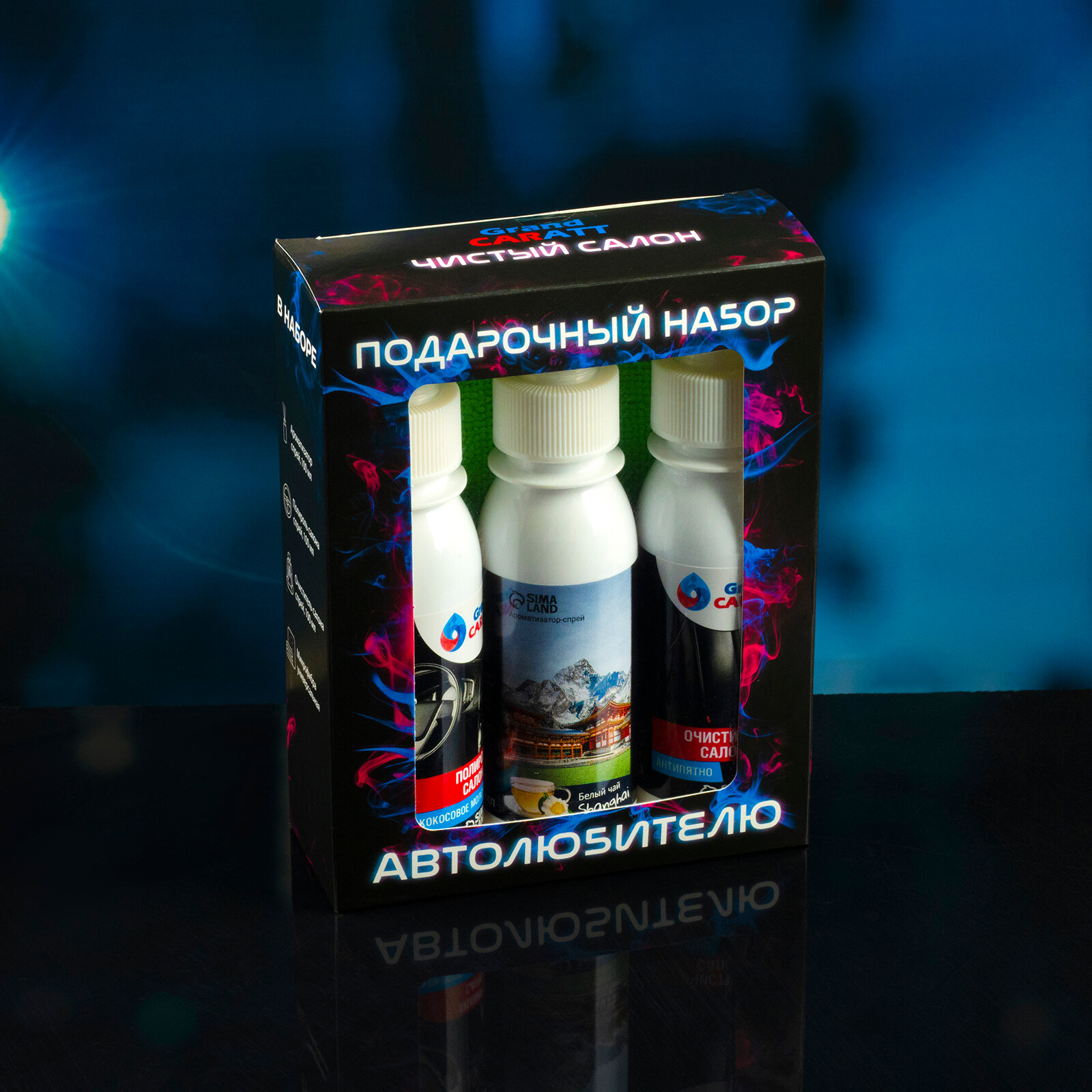 | Дополнительная информация | ароматизатор-спрей 100 мл, полироль салона 100 мл, очиститель салона 100 мл, микрофибра |