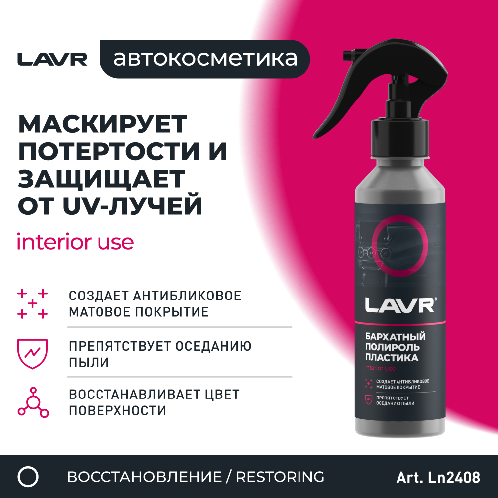 Полироль пластика бархатный LAVR, 255 мл / Ln2408 интересное: