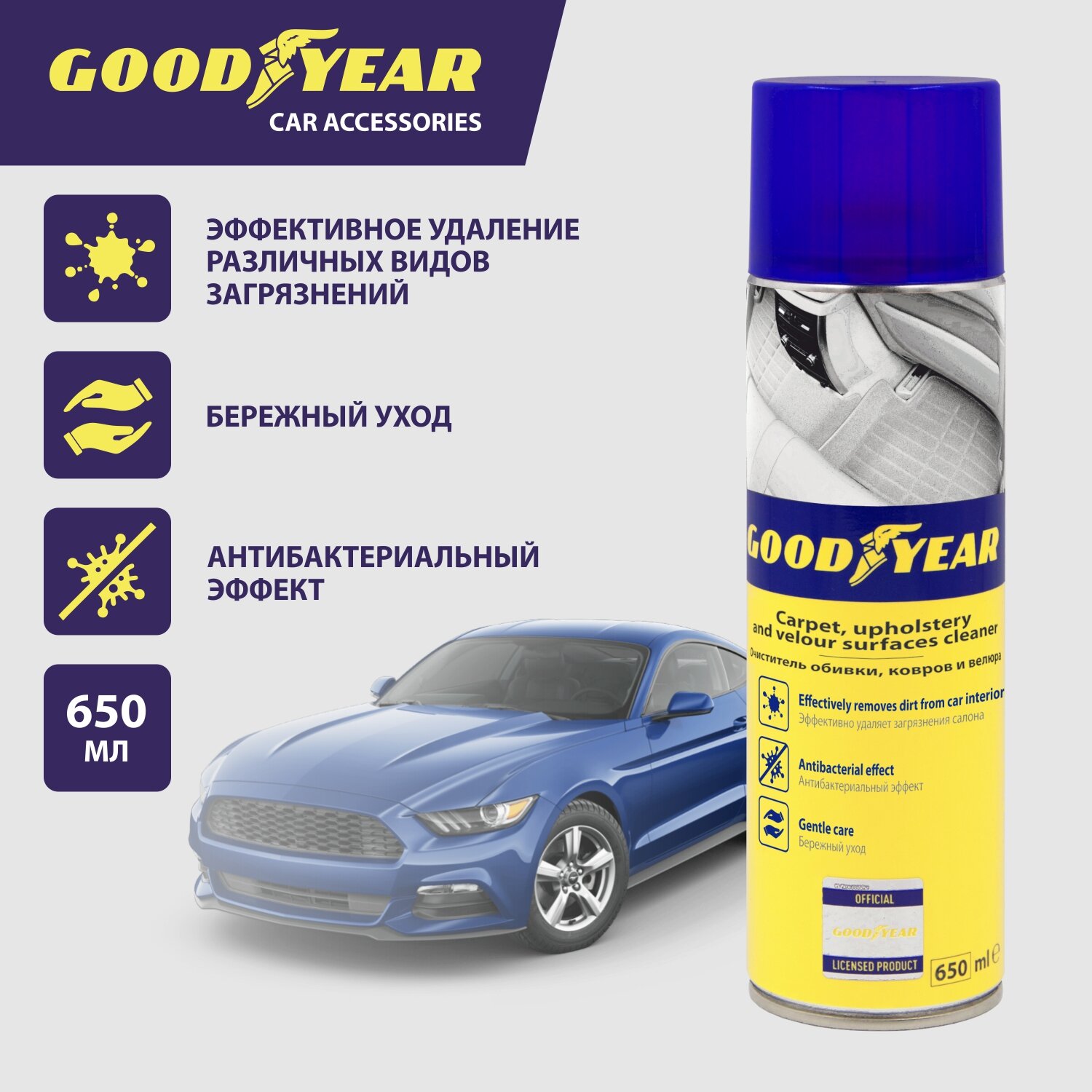 Goodyear Очиститель обивки, ковров и велюра, аэрозоль 650 мл GY000711 . интересное: