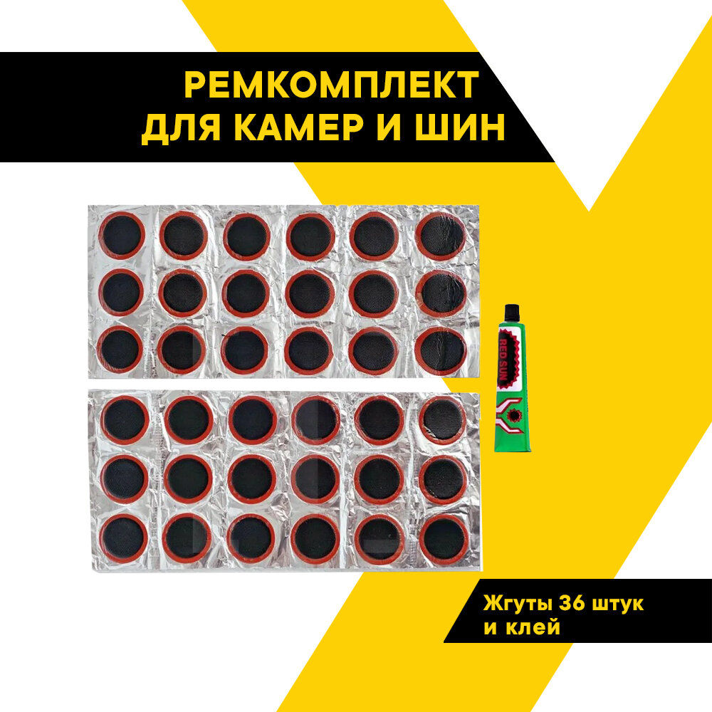 Набор для ремонта шин и камер при проколах и порезах (резиновые жгуты круглые диам.28 мм 36 шт, клей) ТОП авто (TOPAUTO), TA-SH-LK36 интересное: