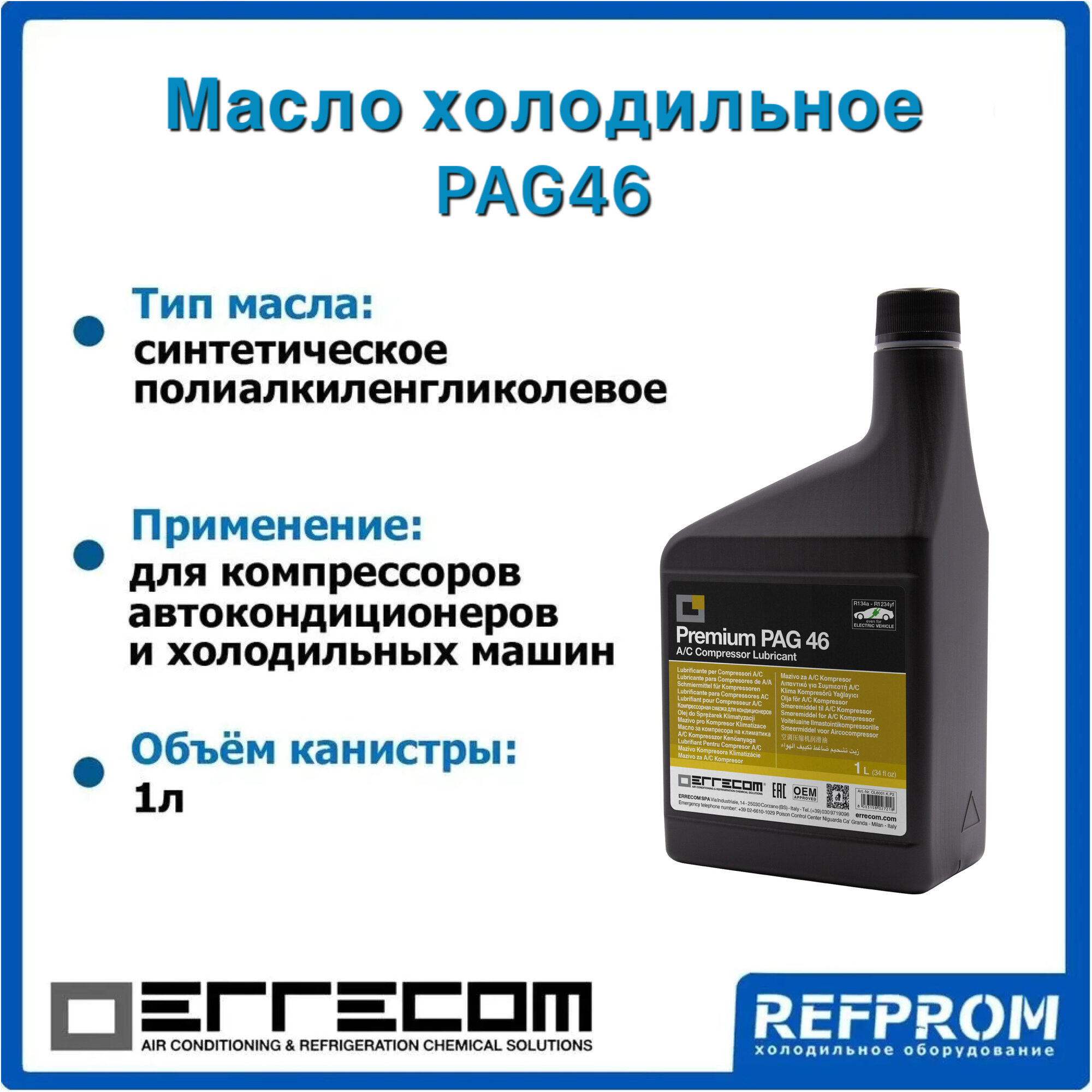Масло для кондиционеров ERRECOM PAG 46 (1л.) интересное: