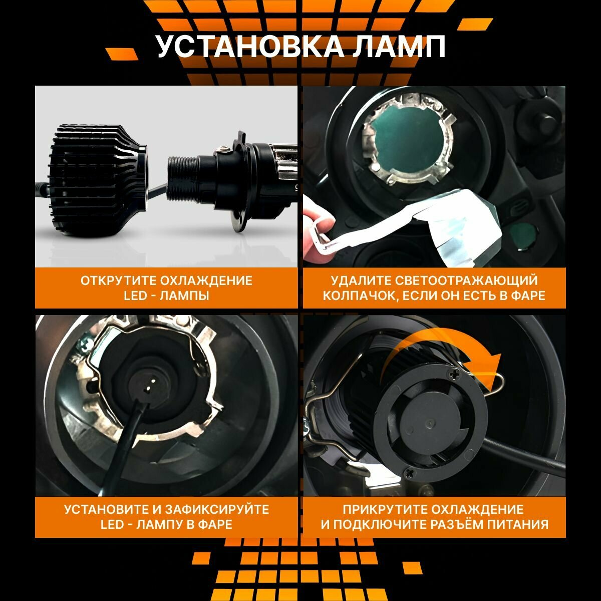 | Комплектация | Светодиодные мини Bi-LED линзы - 2 шт; Контроллеры - 2 шт; Перчатка для установки - 1шт; Упаковка - 1шт. |