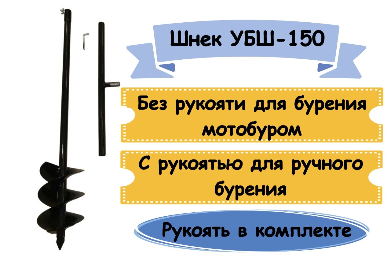 Универсальный бур-шнек по грунту УБШ-150, длина 1 метр ( рукоять для ручного бурения в комплекте) интересное: