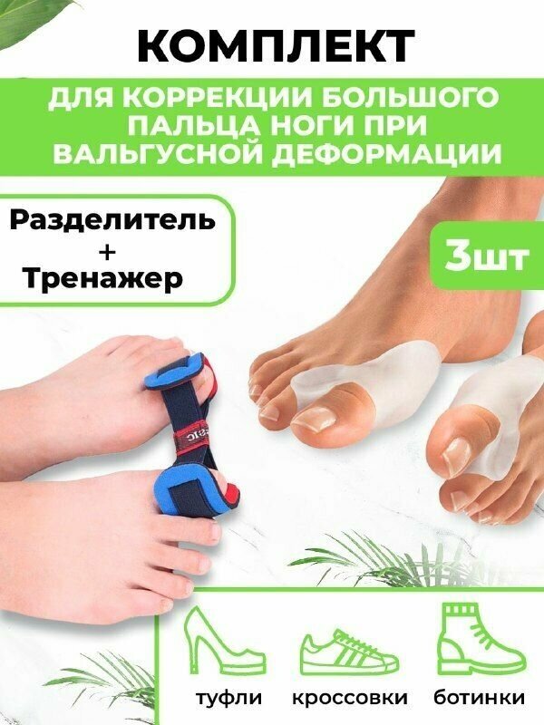 Комплект от косточек на ногах QuisLife: Тренажер при вальгусной деформации 1 шт, Межпальцевые разделители 1 пара