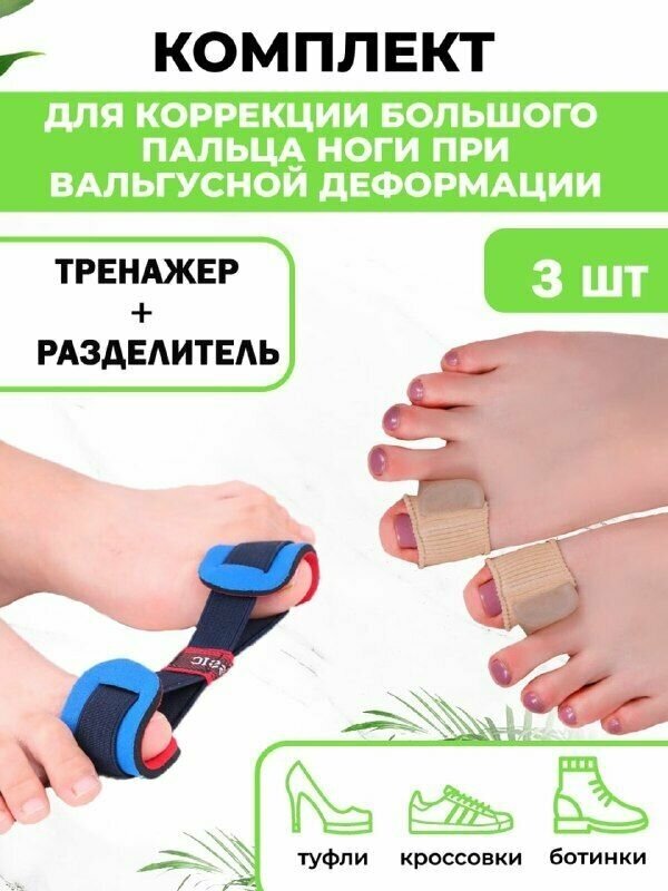 Комплект от косточек на ногах QuisLife: Тренажер при вальгусной деформации 1 шт, Межпальцевые разделители 1 пара интересное: