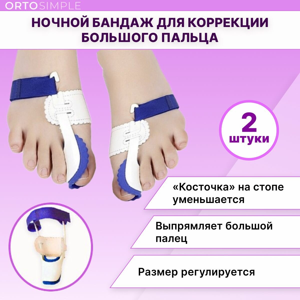 | Дополнительная информация | Ночной бандаж для использования во время отдыха и сна, при вальгусной деформации для выравнивания большого пальца ноги, корректор большого пальца |
