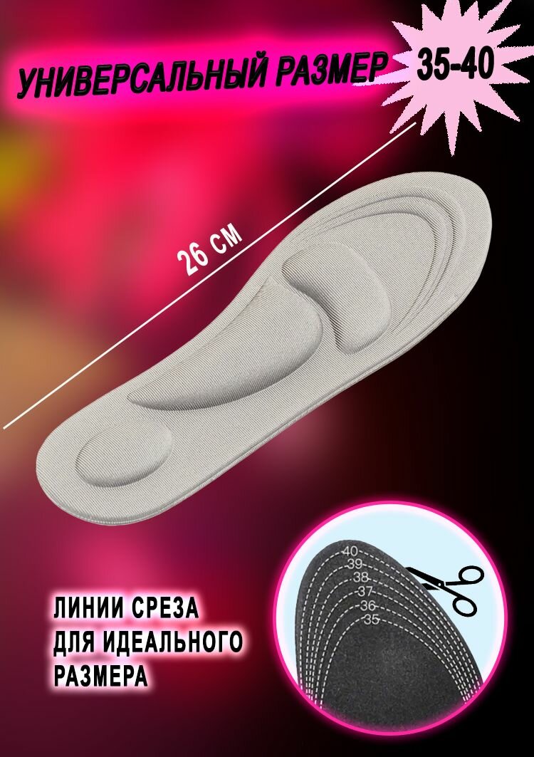 Стельки для обуви ортопедические при плоскостопии Размер 35-40 серые / Для мужчин и женщин