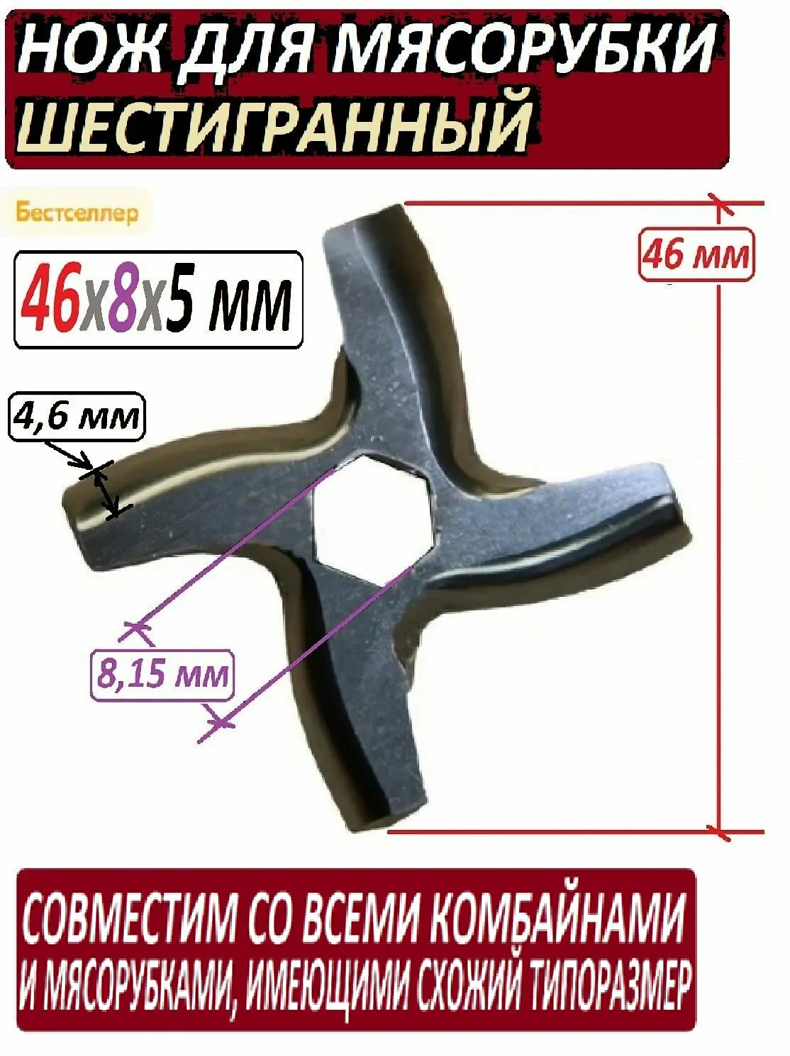 Нож для мясорубки с посадкой под шестигранник 8 мм - 1 шт интересное: