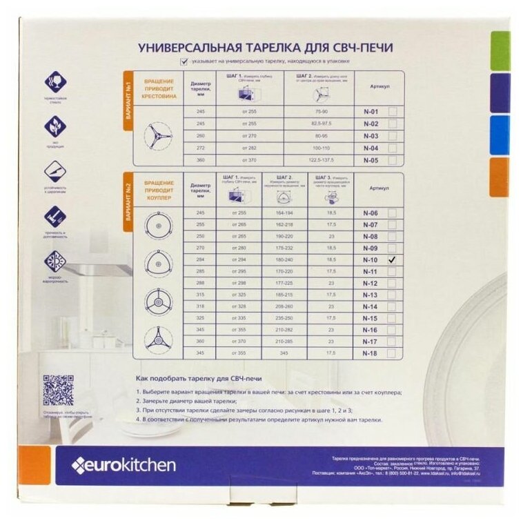 | Подробная комплектация | Тарелка для СВЧ EURO Kitchen EUR N-10 |